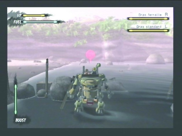 Reste que le jeu est vraiment facile, mais il faudra néanmoins passer une véritable épreuve, le permis de conducteur du Trottemobile, qui lui n'a pas été conçu de façon à vous simplifier la vie. La jouabilité du mech est basée sur la synchronisation des deux sticks analogiques, chacun représentant la motricité d'une jambe. Si vous ne pousser que celui de gauche par exemple, votre Trottemobile se bornera à tourner sur lui même comme un chat autiste à la poursuite du bout de sa propre queue. Du fait de la rigidité du véhicule, le simple fait d'avancer tout droit relève de la contrariété au début, surtout si l'on est pas passé par des épreuves cousines qui utilisent à même escient les sticks du DualShock, comme Armored Core ou Katamari Damacy. Pour dynamiser la conduite comme il se doit, le Trottemobile peut se fendre d'un saut ainsi que d'un boost temporaire, et d'un système de ciblage indispensable pour mener des combats jouables. Au final, le schéma alambiqué de la conduite d'un Trottemobile a le mérite d'avoir sa propre identité, mais peut également être vu comme un exercice qui se complique inutilement la vie, dans un compartiment fondamental avec lequel il est rarement judicieux de s'éparpiller, celui de la jouabilité. Alors, relaxant Steambot Chronicles ? Certes, mais une fois son véhicule apprivoisé.