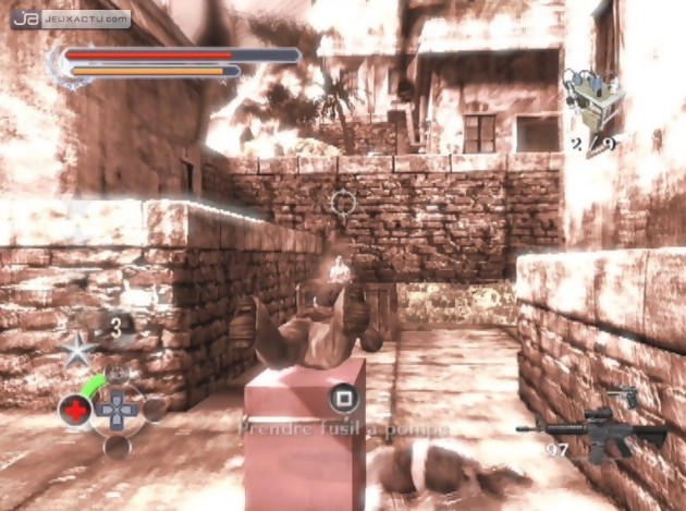 L’association Unreal Engine 3 et Havok permet à Stranglehold de présenter des décors totalement destructibles. De la simple caisse de fruits aux bâtiments et autres buildings, en passant par les véhicules, les portes, les chaises et autres éléments mineurs du décor, rien ne résistera aux balles qui fustigent de toute part. Il faut dire que pour faire honneur à la renommée du maître du gunfight, Stranglehold se devait de proposer des séquences de tirs digne de ce nom. Et Stranglehold n’a pas usurpé sa réputation. Le John Woo-fan aura de quoi émoustiller sa libido de gunfighter en herbe puisque tous les mouvements possibles et inimaginables ont été intégrés dans le jeu. C’est simple, pour pouvoir survivre à l’assaut de hordes d’ennemis toujours plus nombreux, Tequila est capable de glisser sur les tables, courir le long d’une rampe, prendre appui sur un mur, faire des plongeons de tous les côtés, s’agripper à des objets suspendus ou bien encore se cacher derrière un élément du décor. Bref, tant qu’à buter du monde, autant le faire avec classe. A cette panoplie de mouvements spectaculaires s’ajoutent le fameux ralenti dont est friand le cinéaste chinois. Il existe deux types de ralenti, celui qu’on peut utiliser en abondance en appuyant simplement sur la touche L2, soit en plongeant l’action dans un mode slow motion qui permet même de voir les balles se déplacer au ralenti, façon The Matrix et ainsi les éviter à la dernière minute. Grisant. Quant au combat au corps à corps, il s’agit d’une simple formalité puisque Tequila est juste capable d’assommer ses ennemis.
