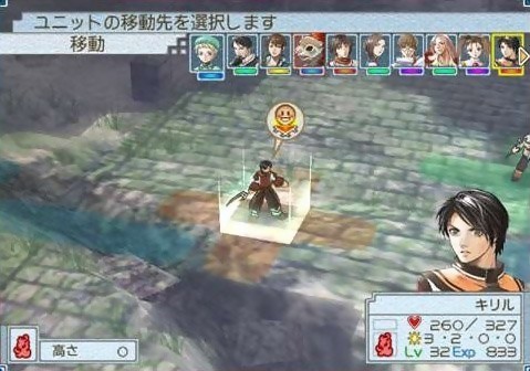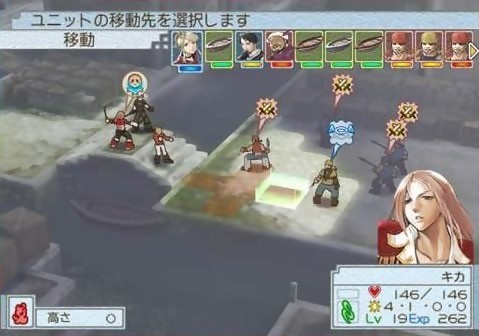 Du côté du panel de personnages, rien de vraiment innovant : des épéistes plutôt nombreux côtoyant des mages et des archers. Il sera surtout primordial d’optimiser le placement et les aptitudes de chacun afin d’éviter la mort soudaine d’une de vos unités par un malencontreux coup critique dans le dos. Ici, à la manière d’un Fire Emblem, il est possible de perdre définitivement un personnage, événement aléatoire qui nous amène très vite à croiser les doigts à chaque décès. Certes, pour les puristes voulant porter tout leur petit monde à la victoire en un seul morceau, il existe la commande rejouer, mais les maps sont assez longues et éprouvantes et voir un personnage disparaître quand on touche enfin au but est terriblement frustrant. Mais je ne cache pas que ce petit aléa peut être finalement un bon stimulant et surtout un bon remède à un style de jeu trop barbare. D’autant que les plus frileux pourront se rassurer, les protagonistes principaux ne souffrent pas de ce handicap, et quitteront simplement la bataille au lieu d’y laisser leur vie. Il sera donc tout à fait possible de se constituer une équipe "d’immortels" et finir ainsi le jeu. A la fin de chaque combat, outre l’argent et les éventuels objets bonus, le joueur se voit attribuer des points de compétence qu’il pourra répartir à loisir entre ses personnages pour augmenter les rangs de leurs capacités. Ils peuvent par ce système acquérir la possibilité de contre-attaquer, d’augmenter le nombre de frappe, de gagner des cases de déplacement ou encore d’augmenter leur puissance magique. On peut ainsi choisir entre une bonne dizaine d’aptitudes pour personnaliser un peu plus ses combattants.