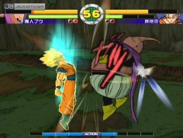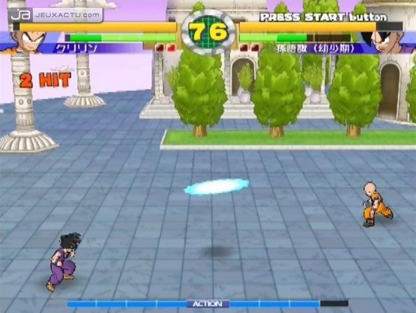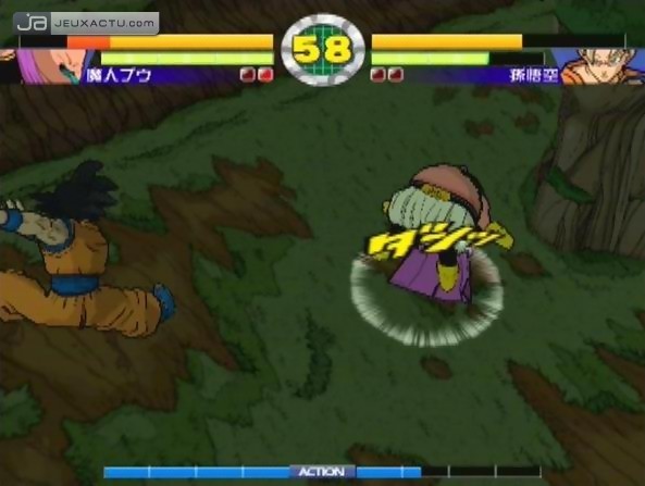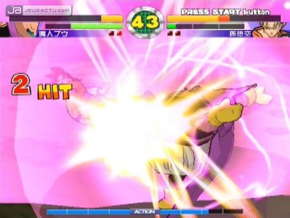 Mélanger l’univers de Dragon Ball Z au gameplay mythique de Street Fighter II, l’idée ne date pas d’aujourd’hui. Ceux qui suivent de près les prestations vidéoludiques de Son Goku se souviendront de Dragon Ball Z 2 : Super Battle, un jeu de baston sorti en Arcade en 1995 et qui reprenait déjà le principe d’affrontements façon jeu de baston old school. Sans être trop mauvaise, l’expérience n’a pas non plus été concluante, si bien qu’aucun autre éditeur n’a osé tenter l’aventure une nouvelle fois. Il aura donc fallu attendre onze belles années pour que le studio Crafts & Meister décide de franchir le pas. Composé d’anciens membres de Capcom ayant travaillé sur Street Fighter II, la jeune société japonaise s’érigeait donc comme le candidat idéal pour faire le lien entre DBZ et Street Fighter II. Sorti dans un premier temps sur borne d’arcade, Super DBZ (Chou Dragon Ball Z pour son titre japonais) est finalement adapté sur PS2. L’adaptation bien que parfaite risque de poser quelques soucis sur le monolithe de Sony.