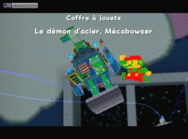 Toujours basé sur le kidnapping de Peach, le scénario de Super Mario Galaxy se veut un tantinet moins rose-bonbon qu'à l'accoutumée. C'est vrai, on n'échappe pas aux standards puérils de la maison, avec des personnages aux noms frisant parfois le ridicule, mais Nintendo a fait un effort pour limiter la niaiserie à laquelle on a eu droit pendant plusieurs années. Pas le temps de tergiverser, on se retrouve immédiatement plongé dans le pillage du royaume Champignon, ou plutôt de son château, alors que la fête des étoiles et de leurs éclats battait son plein. A l'origine de la manoeuvre, l'infatigable Bowser qui, en claquant des doigts, ordonne à ses sbires de chiper le palais en un seul bloc, au nez et à la barbe d'un Mario impuissant. Dans une transition proche de celle de Super Paper Mario, notre héros va recouvrer ses esprits et faire connaissance avec Harmonie, une autre princesse qui lui servira naturellement de guide durant toute la quête. Mario pourra aussi compter sur les Lumas, des étoiles taille pupille pleines de bonne volonté, avec lesquelles il faudra composer dans certaines situations. Après s'être vu confier un Luma spécifique, le plombier pourra alors déambuler dans l'observatoire de la comète, et pénétrer dans les nombreux dômes qui abritent les différentes galaxies. A l'ancienne, Mario devra alors récupérer suffisamment d'étoiles pour délivrer Peach, et mettre fin par la même occasion aux plans machiavéliques de Bowser. Une quête qui s'annonce galactique.