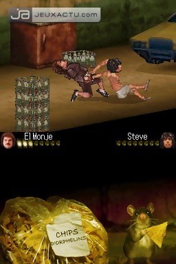 Bien au contraire, il repousse les frontières de la misère ludique. Construit autour d'une improbable alternance de combats de catch injouables et répétitifs et de mini-jeux grotesques, Super Nacho est une blague aussi grasse que son héros. Essayant, sans succès, de masquer sa réalisation minable derrière une esthétique décalée largement inspirée des créations flash qui circulent sur le net, le chef d’œuvre de Budcat peine même à exploiter convenablement les options tactiles de la DS. Si le problème est partiellement contourné dans des phases de fight qui ne font appel qu’aux boutons de la console, les petites activités débiles proposées en complément tentent toutes d’apprivoiser le stylet, et ce pour un résultat systématiquement catastrophique. Plagiant avec allégresse des titres dans la lignée de WarioWare, ces séquences vous invitent notamment à éviter, au volant d’un triporteur motorisé, des vaches en folie ; à écraser des abeilles avant qu’elles ne piquent Esqueleto, le famélique compère ; ou à lancer des melons sur le personnage principal. Se voulant amusants, ces intermèdes s’avèrent parfaitement insupportables tant la maniabilité est mal fichue. Les mouvements à exécuter nécessitent une précision surhumaine, les actions s’enchaînent mal et les différentes interfaces associées sont déplorables. Il vous faudra pourtant triompher de chaque épreuve pour développer les aptitudes physiques du loser ambitieux qu’est Nacho, et ainsi lui permettre de se ruer dans l’arène pour des combats moches et mous. Les coups, rigolos tendance cartoon, avec désarticulation de l’adversaire et autres têtes qui gonflent puis éclatent, sont difficiles à sortir, le personnage est odieusement peu réactif et l’attribution des boutons démontre que le terme "ergonomique" ne figure pas au vocabulaire de tout un chacun. Crispé par des musiques horripilantes, l’acheteur inconscient terminera ce bref calvaire ludique dans un état de tension confinant à la folie furieuse et, dans un dernier sursaut de lucidité, cravatera la honteuse cartouche avant de l’achever d’un beau german souplex des familles.
