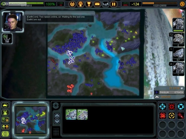 Pour comprendre toutes les subtilités du titre, passons logiquement par la case didacticielle On évolue sur une carte entièrement libre et dénuée de tout ennemi pour se familiariser avec les différentes commandes de base. A tout moment, on peut accéder à une dizaine de vidéos pour comprendre le fonctionnement d’un point bien particulier. Les trois campagnes sont par contre bien plus formatrices et offrent un apprentissage progressif. Ainsi, la première mission passe en revue la gestion des ressources, la création de bâtiments, la gestion des radars et de son armée. Il n’y aucune différence de niveau entre ces missions, mais l’on peut y progresser à sa guise. Chaque mission dure au moins deux bonnes heures, autant dire que la durée de vie est conséquente. L’intérêt est sans cesse renouvelé par des missions variées : espionnage, défense d’une base, escorte d’un convoi, triangulation d’une zone de la carte avec des radars pour détecter l’ennemi, etc. Les objectifs sont donnés au compte-goutte et la progression est assez atypique. En effet, là où on a l’habitude de passer au niveau suivant à partir d’un certain stade de la partie, la carte s’agrandit jusqu’à doubler de volume, et de nouvelles tâches nous sont confiées. On évite ainsi toute la partie construction de base un peu barbante et surtout la frustration que connaissent beaucoup de joueurs d’avoir établi un camp avec des infrastructures et une armée digne de ce nom pour du vent. Cela n’empêche pas d’avoir toute sa stratégie à repenser au fur et à mesure de l’agrandissement de la carte. L’ennemi peut par exemple se trouver sur le front Est alors que toutes nos infrastructures militaires se trouvent au Sud. De nouvelles sources d’énergies apparaissent et il faut rapidement prendre le contrôle des positions stratégiques (îlots, etc.) pour construire des avant-postes. Souvent, l’arbre des technologies s’agrandit et déverrouille tout un tas de bâtiments et d’unités encore plus performantes. Les différentes cartes prennent finalement une envergure monstrueuse et ses dimensions atteignent parfois les 80 kilomètres de largeur et de longueur. Du jamais vu !