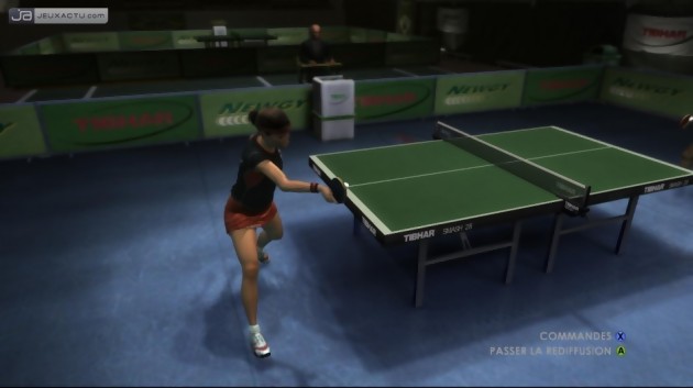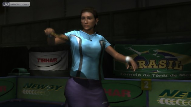 Mais avant de maîtriser Table Tennis, il va falloir cravacher sec, se donner à fond. Malgré l’absence d’un mode "Carrière", Table Tennis arrive néanmoins à tenir la dragée haute en mode multijoueur. Pourquoi ? Tout simplement parce qu’il va falloir se lever tôt pour débloquer l’ensemble des bonus du jeu. Personnages, maillots, tournois et décors, chacun de ses éléments deviennent accessibles à la fin d’un match victorieux, lancés dans le mode Tournoi, composé de trois championnats : Bronze, Argent et Or. Car lorsque vous lancerez Table Tennis, vous n’aurez accès qu’à 4 pongistes, pas les plus mauvais (Liu Ping étant le joueur le plus complet) rassurez-vous, mais après quelques heures de jeu, on n’aura vite fait de vouloir les autres sportifs. Mark, Juergen ou bien encore Jung-Soo font partie des pongistes les plus appréciés grâce à leurs capacités à tromper l'adversaire grâce à leurs effets. A l’instar d’un jeu de tennis, le choix de son pongiste se fait bien évidemment en fonction de ses préférences. Pour commencer, il convient de choisir Liu Ping, certainement le perso le plus équilibré et le plus complet. Chinois d’origine, il tient sa raquette façon porte-plume comme on dit dans le jargon du ping-pong et s’avère être un excellent compromis pour bien débuter. Si on se découvre une passion soudaine pour la brutalité, mieux vaut se tourner vers un Jesper (son coup droit est tout bonnement dévastateur) ou un Mark, deux brutes épaisses qui aiment jouer les bourrins de service. En revanche, ceux qui ont tendance à se la jouer fourbe avec des coups plus vicieux et mise avant tout sur la stratégie, Juergen, Jung-Soo ou bien encore Kumi vont très bien l’affaire. Mention spéciale à Luc, le seul Français du jeu, reconnaissable entre mille avec son look inimitable. On s’en souviendra.