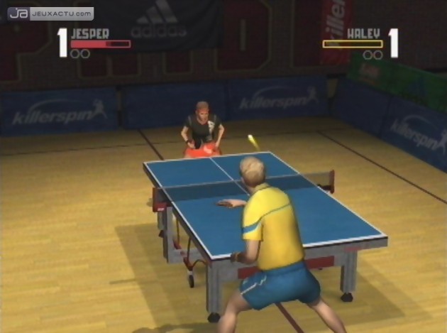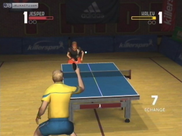 Mais avant de maîtriser Table Tennis, il va falloir cravacher sec, se donner à fond. Malgré l’absence d’un mode "Carrière", Table Tennis arrive néanmoins à tenir la dragée haute en mode multijoueur. Pourquoi ? Tout simplement parce qu’il va falloir se lever tôt pour débloquer l’ensemble des bonus du jeu. Personnages, maillots, tournois et décors, chacun de ses éléments deviennent accessibles à la fin d’un match victorieux, lancés dans le mode Tournoi, composé de trois championnats : Bronze, Argent et Or. Car lorsque vous lancerez Table Tennis, vous n’aurez accès qu’à 4 pongistes, pas les plus mauvais (Liu Ping étant le joueur le plus complet) rassurez-vous, mais après quelques heures de jeu, on n’aura vite fait de vouloir les autres sportifs. Mark, Juergen ou bien encore Jung-Soo font partie des pongistes les plus appréciés grâce à leurs capacités à tromper l'adversaire grâce à leurs effets. A l’instar d’un jeu de tennis, le choix de son pongiste se fait bien évidemment en fonction de ses préférences. Pour commencer, il convient de choisir Liu Ping, certainement le perso le plus équilibré et le plus complet. Chinois d’origine, il tient sa raquette façon porte-plume comme on dit dans le jargon du ping-pong et s’avère être un excellent compromis pour bien débuter. Si on se découvre une passion soudaine pour la brutalité, mieux vaut se tourner vers un Jesper (son coup droit est tout bonnement dévastateur) ou un Mark, deux brutes épaisses qui aiment jouer les bourrins de service. En revanche, ceux qui ont tendance à se la jouer fourbe avec des coups plus vicieux et mise avant tout sur la stratégie, Juergen, Jung-Soo ou bien encore Kumi vont très bien l’affaire. Mention spéciale à Luc, le seul Français du jeu, reconnaissable entre mille avec son look inimitable. On s’en souviendra.