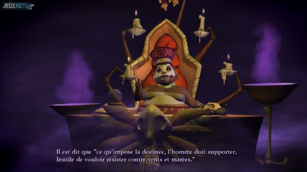 Comme l'on pouvait s'y attendre, la boîte de jeu regroupe les cinq épisodes de Tales of Monkey Island, et nous gratifie également de quelques bonus toujours bienvenus (images, fonds d'écran, avatars, vidéos...). Le plus gros du travail d'édition concerne bien évidemment l'adaptation française, même si c'est le choix d'une version originale sous-titrée qui a été retenu. Pas de doublage audio français donc, ce qui n'est pas forcément un mal car on sait que ce genre d'entreprise ne donne pas toujours de bons résultats. De plus, les voix américaines collent parfaitement aux personnages. Seuls les réfractaires à la lecture de sous-titres arriveront donc à se plaindre de cette localisation. En revanche, ils se délecteront comme les autres de la sympathique bande-son, qui multiplie les musiques aux accents caribéens. D'une manière générale, l'ambiance pirates, bouteilles de rhum et rituels vaudous se montre très réussie. Les habitués de Monkey Island se sentiront comme chez eux, tandis que cette atmosphère rappellera certainement aux plus jeunes joueurs la saga cinématographique Pirates des Caraïbes. D'ailleurs, précisons que le jeu est susceptible de convenir aux deux types de public. Les fans se délecteront de références plus ou moins explicites aux aventures précédentes, les autres passeront à côté sans s'en rendre compte mais riront tout de même à tous les autres traits d'humour. Fidèle à la tradition de la série, Tales of Monkey Island multiplie en effet les énigmes délirantes et les dialogues improbables. Toutes les situations ne sont pas aussi drôles les unes que les autres mais, dans l'ensemble, il y a de quoi se réjouir. A ce titre, le premier des cinq épisodes disponibles apparaît d'ailleurs un peu en retrait. Mais c'est bien naturel puisqu'il sert surtout à poser le scénario global et à nous (re-)présenter les personnages les plus importants.