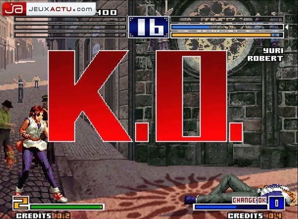 Après 14 ans de bons et loyaux services, la Neo Geo est sur le point de tirer sa révérence. Née un beau matin de 1990, celle qu’on appelle la Rolls Royce des consoles proposait à l’époque de vrais jeux d’arcade à la maison. Même qualité graphique, même bande-son et surtout une maniabilité identique aux bornes d’arcade grâce à ses fameux sticks quasi inaltérables. La Neo Geo était donc la console à posséder absolument pour tout fan de baston 2D racé qui se respecte. Alors que la guerre des 16 bits entre la Super Nes et la Megadrive faisait rage, SNK s’attaquait à tout autre public, celui capable de débourser sans compter et de s’offrir des jeux à des prix avoisinant en premier lieu les 1500F (environ 230 €). Les années passant, le prix de ces monstrueuses cartouches amplifiait pour maintenant atteindre en moyenne les 350 € (soit 2300F). Malgré le poids des années, le public répond toujours présent et la sortie d’une nouvelle cartouche est un événement de taille. Et c’est exactement le cas pour cet opus 2003 aux qualités surprenantes et surtout inattendues.