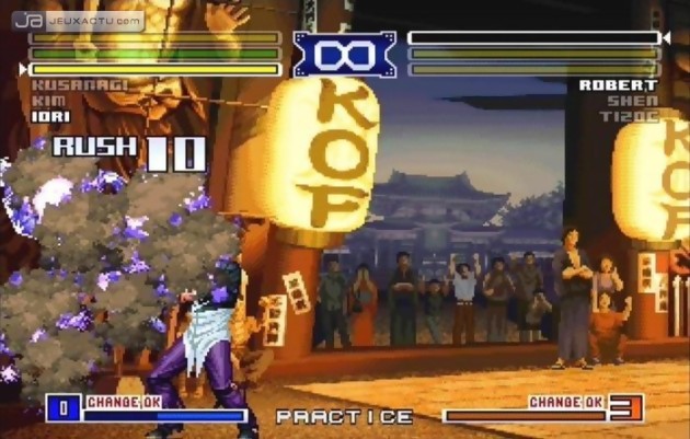 Un peu chaotiques, les sorties européennes des titres SNK Playmore se sont enfin stabilisées. Si ces derniers sont toujours édités par Ignition Entertainment sur le Vieux Continent, les éditeurs en France se crêpent le chignon pour obtenir les droits de distribution. Initialement entre les mains de Nobilis, la licence est ensuite passée dans les filets de Take Two Interactive peu avant l’E3. A notre retour de Los Angeles, nouveau coup de théâtre puisque Nobilis nous informe avoir repris les rênes de l’affaire. Les esprits désormais clairs, les trois derniers titres de la firme japonaise peuvent enfin sortir de leur transit aéroportuaire. On commence donc les festivités par The King of Fighters 2003.