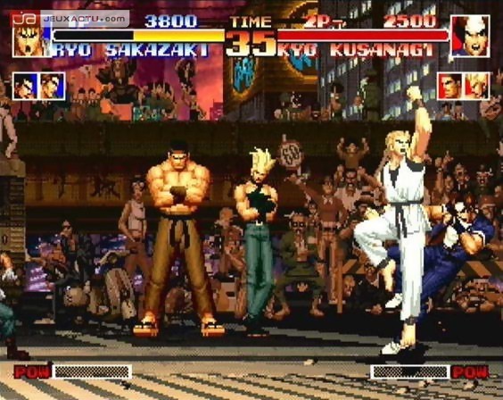 Mine de rien, voilà maintenant dix bonnes années que le tout premier KOF est apparu en Arcade puis sur Neo Geo. A cette époque, SNK ne se doutait pas qu’il allait lancer la mode du cross-over, repris en grandes pompes par Capcom avec des productions telles que Marvel VS Capcom, X-Men VS Street Fighter, Capcom VS SNK ou récemment le bien médiocre Capcom Fighting Jam. Autant de titres qui n’ont jamais réussi à surpasser ni même égalé la technicité d’un KOF. Chaque nouvel épisode apportait son lot de nouveautés. Tantôt minimes (KOF ’95, ’97) tantôt bardées de génie (KOF ’96, ’98, 2003) elles ont toujours permis à la série de se renouveler chaque année afin de donner envie aux collectionneurs bien fortunés de sortir à nouveau leur carte bancaire.