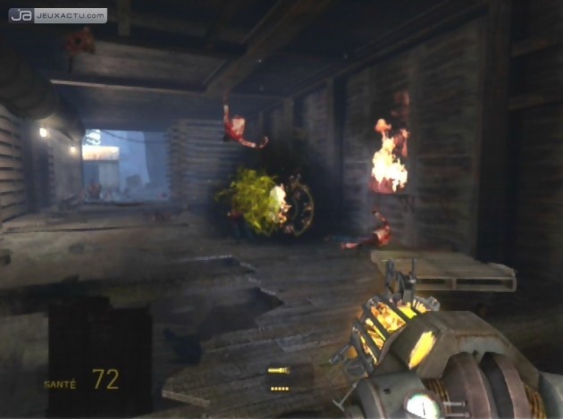 Evidemment, Half-Life 2 a trois ans d’existence et accuse un peu son âge. Les textures ne sont pas d'une grande finesse et on sent bien qu'on n'est pas face à un moteur ultra next gen’ qui en met plein la vue. Quoiqu’à l’époque, c’était vraiment le top. Reste que c'est tout de même très joli. Les environnements et le game design sont plus complexes, osons le dire, que ceux d'un Halo 3, et impressionnent donc toujours. D'autant plus que la gestion de la physique reste assez moderne, puisque grâce au Gravity Gun, vous pourrez briser et faire léviter de nombreux éléments. Pratique pour attraper une planche et la balancer à la tronche d'un garde par exemple ! Et ce n'est d'ailleurs pas une fonctionnalité gadget, car la manipulation d'objets sera à la base d'énigmes, jamais bien complexes toutefois. Bref, on a déjà là un FPS assez costaud peut-être pas assez sexy techniquement, mais dont le gameplay n'a rien à envier à ses récents camarades. Arrivé au bout, on est déjà très content, on a passé un excellent moment mais... quand y'en a plus, y'en a encore !