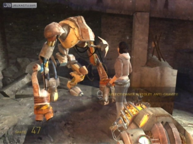 Evidemment, Half-Life 2 a trois ans d’existence et accuse un peu son âge. Les textures ne sont pas d'une grande finesse et on sent bien qu'on n'est pas face à un moteur ultra next gen’ qui en met plein la vue. Quoiqu’à l’époque, c’était vraiment le top. Reste que c'est tout de même très joli. Les environnements et le game design sont plus complexes, osons le dire, que ceux d'un Halo 3, et impressionnent donc toujours. D'autant plus que la gestion de la physique reste assez moderne, puisque grâce au Gravity Gun, vous pourrez briser et faire léviter de nombreux éléments. Pratique pour attraper une planche et la balancer à la tronche d'un garde par exemple ! Et ce n'est d'ailleurs pas une fonctionnalité gadget, car la manipulation d'objets sera à la base d'énigmes, jamais bien complexes toutefois. Bref, on a déjà là un FPS assez costaud peut-être pas assez sexy techniquement, mais dont le gameplay n'a rien à envier à ses récents camarades. Arrivé au bout, on est déjà très content, on a passé un excellent moment mais... quand y'en a plus, y'en a encore !