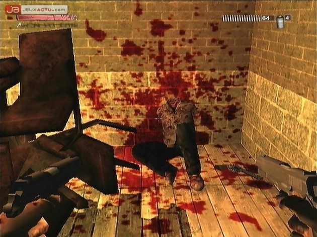 La série The Suffering est avant tout un jeu d’action qui s’apprécie à la troisième personne afin de contempler au mieux les pérégrinations de notre cher Torque de Carnate à Baltimore. Et si on ne tenait pas trop compte des problèmes de caméra l’année dernière, il faut avouer que cette année notre patience a des limites. Beaucoup plus ennuyeuse, la gestion des angles de vue devient tout bonnement horripilante dans des pièces exiguës telles que les embranchements d’égouts, les cages d’escalier ou les appartements. Et si par malheur la caméra fait des siennes durant les combats, alors on est bon pour passer trois plombes à tchintcher le stick analogique droit afin de la recentrer dans le dos de Torque. Pour palier à ce problème, il existe une solution qui m’amène donc au deuxième genre prédominant dans The Suffering : Les Liens qui nous unissent : le FPS. Vous pouvez, à tout moment et sans perte de rythme, basculer vers un affichage à la première personne beaucoup plus précis notamment lors des phases de shoot en bonne et due forme. Viser la tête des monstres à l’aide d’un Magnum 357, exploser un groupuscule d’ennemis ravagés de la caboche en tirant une roquette ou tout simplement briser quelques os avec un tuyau en guise de batte, rien ne sera plus facile que lorsque vous jouerez en First Person Shooter. A contrario, la caméra embarquée dans le dos du personnage manque sérieusement de précision à cause d’une raideur dans la visée ou dans les déplacements de Torque qui ne sont pas sans rappeler un certain Max Payne.