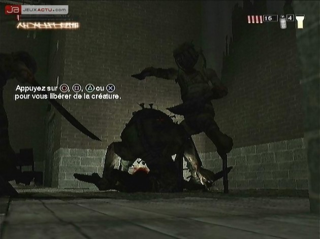La série The Suffering est avant tout un jeu d’action qui s’apprécie à la troisième personne afin de contempler au mieux les pérégrinations de notre cher Torque de Carnate à Baltimore. Et si on ne tenait pas trop compte des problèmes de caméra l’année dernière, il faut avouer que cette année notre patience a des limites. Beaucoup plus ennuyeuse, la gestion des angles de vue devient tout bonnement horripilante dans des pièces exiguës telles que les embranchements d’égouts, les cages d’escalier ou les appartements. Et si par malheur la caméra fait des siennes durant les combats, alors on est bon pour passer trois plombes à tchintcher le stick analogique droit afin de la recentrer dans le dos de Torque. Pour palier à ce problème, il existe une solution qui m’amène donc au deuxième genre prédominant dans The Suffering : Les Liens qui nous unissent : le FPS. Vous pouvez, à tout moment et sans perte de rythme, basculer vers un affichage à la première personne beaucoup plus précis notamment lors des phases de shoot en bonne et due forme. Viser la tête des monstres à l’aide d’un Magnum 357, exploser un groupuscule d’ennemis ravagés de la caboche en tirant une roquette ou tout simplement briser quelques os avec un tuyau en guise de batte, rien ne sera plus facile que lorsque vous jouerez en First Person Shooter. A contrario, la caméra embarquée dans le dos du personnage manque sérieusement de précision à cause d’une raideur dans la visée ou dans les déplacements de Torque qui ne sont pas sans rappeler un certain Max Payne.