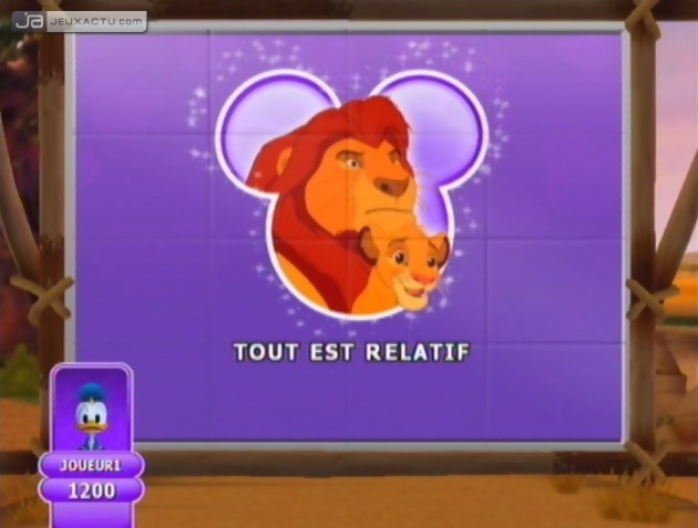 Développé à la fois sur Wii et PlayStation 2, TH!NK Fast : Le Maxi Quiz reprend les grandes lignes du Buzz de Sony, à la différence près que tout est façonné pour coller à l’univers – enfantin – de Disney. Le ou les joueurs doivent donc choisir son personnage au préalable parmi ceux proposés. Mickey, Minnie, Donald, Daisy, Dingo et quelques autres encore, les principaux héros de notre enfance sont embauchés ici en tant que candidat. Derrière leur pupitre, ils devront répondre à une série de questions bien précises, classées par catégorie et faisant toujours référence à un dessin animé, un film d’animation ou un événement lié au monde de l’oncle Walt. Si Sony a opté pour un personnage grotesque, le fameux Buzz et sa tête de camembert, c’est le Génie de la lampe qui se charge ici d’être l’animateur. Son humour et son charisme lui permettent d’être le grand orateur de ce show télévisé. Au joueur alors de choisir le monde (La Petite Sirène, Les 101 Dalmatiens, Le Roi Lion, Lilo & Stitch, etc.) dans lequel il a envie d’évoluer. Il s’agit juste d’un décor de fond et il ne sert donc pas à grand-chose de s’attarder dessus. Comme évoqué quelques signes plus haut, TH!NK Fast : Le Maxi Quiz est tronçonné en plusieurs catégories et il existe plusieurs façon de marquer des points. Bien entendu, chaque épreuve est expliquée par la voix-off – très explicite – du jeu par des règles bien précises. Visionnage de séquences vidéo, participation à des mini-jeux divers et variés, répondre aux questions par Vrai ou Faux, il y a de quoi faire. Bon, il faut bien admettre que le challenge n’est pas vraiment au rendez-vous. Bien entendu, il vaut mieux avoir une certaine culture des produits Disney pour savoir qui a permis à Bernard et Bianca de survoler l’Atlantique ou deviner qui est la Belle-Mère de Cendrillon, mais globalement, il y a très peu de chances de se planter. Vous ne serez donc pas surpris de savoir que TH!NK Fast : Le Maxi Quiz s’adresse avant tout aux jeunes joueurs, ceux qui pensent encore que le Père-Noël parvient toujours à se glisser par la cheminée de la maison le soir de Noël. Ceux-là trouveront un véritable plaisir à répondre à ses centaines de questions, souvent illustrés de petits croquis qui les émerveilleront. Les autres, plus adultes, se dirigeront davantage du côté de Buzz, nettement plus intéressant et qui traite de thèmes plus variés.
