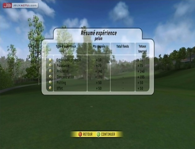 Chaque coup rempliera ou videra votre jauge de gamebreaker, chère à Electronic Arts, qui une fois pleine vous permettra d’améliorer votre puissance de frappe et votre adresse durant un putt. De plus, vous serez gratifier tout au long des 6 parcours et de leurs nombreuses épreuves de bonus financiers et d’items selon vos performances. Car bien évidemment, pour devenir le nouveau n°1 mondial, vous devrez améliorer votre golfeur et cela passera par une optimisation de ses capacités : puissance, boost puissance, précision drives, frappe, approche, effet, putting, récupération, chance et concentration. Que vous réussissiez ou non une épreuve, vous glanerez dans tous les cas des points d’expériences nécessaires à cette amélioration mais aussi de l’argent pour lui offrir une parfaite garde-robe. Cela dit, vous serez obliger de remporter chaque challenge pour continuer l’aventure (et débloquer des nouveaux parcours et golfeurs) et pourquoi les maîtriser en faisant mieux que l’objectif qui vous est proposé.