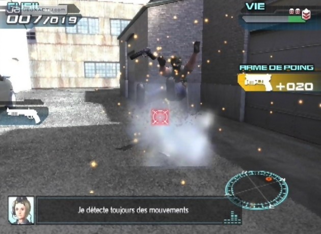 Il est vrai que la série Time Crisis n’a jamais brillé par sa réalisation et s’est toujours démarquée par son gameplay simple, efficace et sans fioritures. Bien entendu, ce quatrième épisode ne déroge pas à la règle. Le gameplay n’a pas changé d’un iota, du moins au premier coup d’œil, et nous demande de flinguer tout ce qui se bouge à l’écran. Pour ce faire, plusieurs armes sont directement mises à disposition. Gun, mitraillette, fusil à pompes et lance-grenades, l’armada est chiche mais suffisamment variée pour allumer l’ennemi de différentes manières. A ce propos, la façon dont on doit switcher d’une arme à une autre (se mettre à couvert et appuyer sur la gâchette de tir) n’est pas le choix le plus judicieux que Namco ait fait. Passons. Afin de garder une certaine cohérence avec les précédents épisodes, le joueur a donc la possibilité de se mettre à couvert lorsque le tir ennemi se fait trop nourri. Cela permet d’ailleurs de recharger son arme sans avoir à pointer le GunCon 3 hors de l’écran, à l’inverse d’un certain Virtua Cop ou Dead or Alive. Lors d’embuscades, il arrive qu’il faille être présent sur deux fronts à la fois. Un geste avec le GunCon 3 à droite ou à gauche permet de changer de côté. Evidemment, à la fin de chaque niveau, il faut affronter soit des ennemis plus puissants (car souvent en surnombre), soit des Boss qui relèvent un peu plus le challenge. Néanmoins, il faudra se faire à l’idée que Time Crisis 4 possède une durée de vie faiblarde puisqu’une poignée d’heures suffisent pour boucler l’aventure. On vous le répète.