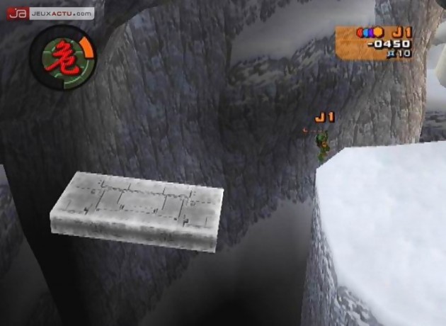 Si par malheur, aucun de vos amis ne souhaite vous accompagner dans votre quête (et on peut les comprendre), vous pourrez néanmoins prendre le contrôle des quatre tortues, désormais stars du petit mais aussi du grand écran, à n’importe quel moment. Une simple pression sur le bouton de tranche L2 et il sera possible d’endosser la carapace de Leonardo, Raphaël, Michaelangelo ou bien encore Donatello. Malheureusement, la quantité ne fait pas toujours la qualité et diriger nos reptiles mangeurs de pizzas relèvent de l’exploit. La palette de coups est toujours aussi restreinte (elle se résume à deux boutons qui proposent à peu de choses près quatre coups différents) et les quelques armes supplémentaires du type shurikens ou blasters n’y changeront rien. La maniabilité calamiteuse n’arrange rien aux choses et sauter d’une plateforme à une autre est un exercice on ne peut plus périlleux. Le temps de réactions des personnages est affligeant et on se retrouve vite débordé par la foultitude d’ennemis qui vous tomberont dessus. Ajoutez à cela une caméra automatique et qui suit tout sauf votre personnage et vous aurez une petite idée de la daube que peut représenter Teenage Mutant Ninja Turtles 2 : Battle Nexus.