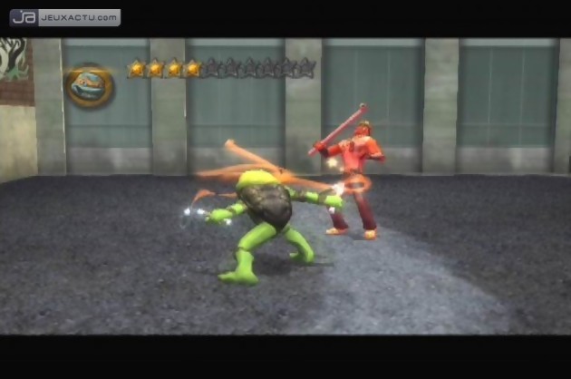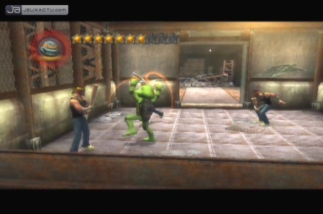 Les jeux à licence traînent avec eux une réputation peu louable, et ce n’est pas avec cette énième adaptation des tortues ninjas que la tendance va se renverser. Malgré la présence des studios d’Ubisoft Montréal aux commandes, TMNT ne restera pas dans les annales par sa qualité. Graphismes sommaires, gameplay ennuyeux et répétitivité des actions sont les principaux défauts de ce jeu qui aurait pu bénéficier d’une meilleure attention. Pourtant, le jeu partait sur de bonnes bases. Reprenant le concept de Prince of Persia, TMNT est un savoureux mélange d’action et de plates-formes dans la peau de nos 4 tortues génétiquement modifiées. Sur le papier, tout ceci s’annonce intéressant mais une fois le jeu lancé et après une bonne heure de jeu, difficile de trouver des arguments qui pèsent en sa faveur. C’est d’autant plus dommage car avec les différentes caractéristiques des tortues ninjas, on pouvait s’attendre à une certaine variété des actions. Si Leonardo, Donatello, Raphaël et Michaelango sont radicalement différents les uns les autres, leur champ d’action montre rapidement ses faiblesses, si bien qu’on se retrouve à réaliser les mêmes mouvements d’un niveau à un autre. La progression ne se montre guère inventive et on enchaîne phases de plates-formes (un peu hasardeuses) et séquences de combats à l’arme blanche des plus soporifiques. La progression se répète inlassablement, sans compter que pour profiter des quatre tortues en même temps, il faut attendre une grosse heure et demi de jeu, avant de pouvoir permuter de personnage. Pire, pour un titre orienté pour un jeune public, la maniabilité peu précise et les sauts mal agencés de nos héros à carapace risquent fortement d’avoir raison de la patience de nos têtes blondes. Si vous espériez apprendre quelques informations à propos de l’histoire du film d’animation, dont est tiré ce jeu, vous risquez d’être déçus. Les développeurs n’ont visiblement pas souhaité développer cette partie et on avance bêtement tout en écoutant les dialogues inintéressants entre les quatre reptiles et Splinter, leur maître d’armes et mentor. Bref, nul besoin de tartiner pour vous faire comprendre que TMNT fait partie de ces titres développés à la hâte, certainement par manque de moyens financiers et pour tenir une deadline trop courte. Prestige ou pas, Ubisoft Montréal sont eux aussi capables du meilleur comme du pire.