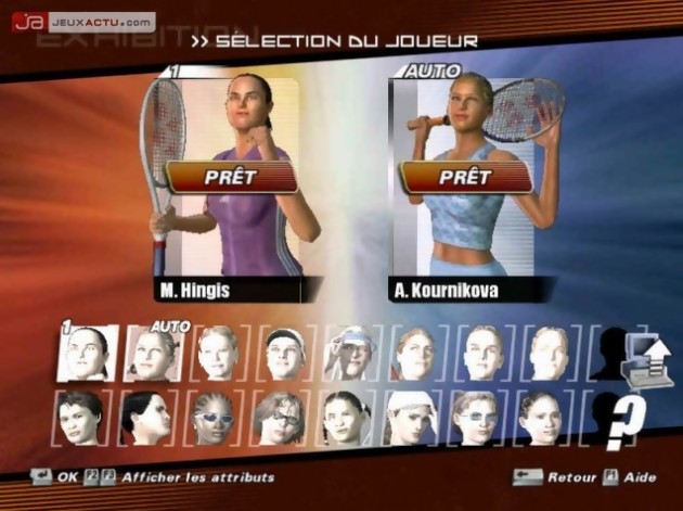 Top Spin présente à priori tous les atouts pour séduire les amateurs de la petite balle jaune. Tout d’abord, le soft propose un panel de 32 joueurs, hommes et femmes dont 16 professionnels de la raquette. En guise de mise en bouche, voici une liste non exhaustive de certaines de ces stars des courts centraux : Pete Sampras, Sébastien Grosjean, Lleyton Hewitt, Gustavo Kuerten, Michael Chang, Anna Kounikova, Martina Hingis pour ne citer qu’eux. Pour la plus grande majorité de ces pros, une motion capture très poussée à été effectuée afin de donner encore plus de réalisme à leurs gestes tennistiques. On reconnaîtra le revers si particulier de Grosjean et de Hewitt capables de sauter en prenant appui sur une jambe et ainsi mettre plus de force dans leur frappe ou encore le service si élancé de Pete Sampras. La modélisation a bénéficié, elle aussi, d’un soin tout particulier et des joueurs comme Sampras, Grosjean et Kournikova sont plus ou moins réussis. Pour les autres, la ressemblance n’est pas toujours flagrante et des joueurs comme Chang, Hingis ou Kuerten risquent de tirer la tronche lorsqu’ils verront leur alter ego en 3D. Si par malheur, les visages de ces pros de la raquette ne vous convenaient pas, vous pouvez créer votre avatar via le player creator, instrument permettant d’insuffler la vie tout en laissant libre court à votre imagination. Comme son nom l’indique, le joueur aura la possibilité de créer son tennisman à travers un nombre immense de critères. Imaginez que dans un premier temps, vous devez choisir le sexe puis l’ADN de votre future star. Une fois la « race » choisie, vous pourrez modifier à loisir sa corpulence, sa taille, les traits de son visage, de quelle main il tiendra sa raquette (droitier ou gaucher) et j’en passe. Grâce aux morps en temps réels et à son interface très souple, on peut intervenir sur trois zones du visage. Vous pourrez choisir la forme de son nez, l’inclinaison du front ou bien encore l’épaisseur des lèvres. Il est possible aussi de l’habiller de la tête aux pieds, ce qui plaira aux stylistes qui ont raté leur vocation. Et faire jouer votre avatar vêtu d’un pantalon moulant ou d’un pull ne pose aucun souci, fashion victim oblige. D’autres caractéristiques plus techniques viendront étoffer votre perso comme le style de son service à choisir parmi trois attitudes différentes. Bref, les possibilités sont dantesques et feront de votre joueur un être unique sur le circuit mondial. Sachez par ailleurs que la corpulence n’est pas un facteur de réussite ou de perte et qu'un joueur plus enveloppé qu'un autre a toutes ses chances pour monter sur le podium. Stéphane Dupas nous confiait qu’il serait vraiment marrant de retrouver un petit gros chauve en tête du classement. C'est certain...