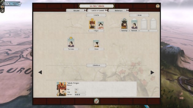 Dans le premier cas, étudier correctement les reliefs du terrain, garder en permanence un œil sur le moral et la fatigue des troupes, et utiliser au mieux les différentes formations (aux noms poétiques de "dragon couché", "guerre du tigre" ou encore "oies en vol") sont autant de points-clés pour remporter la victoire. Dans le second, il faut prendre garde aux abordages (ou bien les provoquer si l'on a l'avantage du nombre), ne pas hésiter à utiliser des flèches enflammées pour mieux mettre à mal les navires en bois adverses, et éventuellement réquisitionner et réparer les vaisseaux vaincus. Quant aux attaques de châteaux, elles s'articulent beaucoup, mais pas uniquement, autour du concept de capture. Quelques bâtiments-clés indépendants sont ainsi répartis sur la map, et il suffit d'en prendre le contrôle pour obtenir des bonus conséquents (ravitaillement de munitions, augmentation de moral...). Le château en lui-même est muni de tours défensives qui peuvent faire de gros dégâts dans vos troupes. Il est naturellement possible de les détruire, notamment à l'aide de canons ou catapultes, mais il est encore plus intéressant de les capturer afin qu'elles se retournent contre leurs anciens propriétaires. Tout aussi stratégique, la partie au tour par tour permet d'enrôler des généraux, à choisir parmi l'arbre généalogique de la famille actuellement contrôlée. Chacun des neuf clans avec lesquels il est possible de démarrer une nouvelle campagne possède bien entendu ses spécificités, il faut donc savoir en tenir compte afin de maximiser ses chances de victoire. De plus, l'arbre de talents nommé "Maîtrise des Arts" offre deux voies de développement différentes : celle du Bushido, dédiée au combat, et celle du Chi, portée sur l'économie et la politique. Car les batailles ne font pas tout, et il est tout à fait envisageable d'étendre son influence à l'aide des différentes menus de diplomatie et finances.