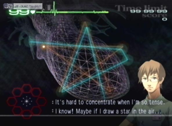 Atlus exploite bien un créneau pouvant toucher au cœur de nos joueurs fans de séries TV. Une touche de techno new-wave, un soupçon d’énigme, voici un super cocktail d’Urgences, de Police Scientifique et presque de X-files. Et oui, une conspiration obscure menace la planète et notre cher docteur Dereck Stiles se devra d’être le grand sauveur de la planète. Le scénario ne donnant pas à notre personnage l’aspect très charmeur d’un Georges Clooney mais ceux d’un jeune freluquet en constante introspection, cette typique touche japonaise du héros plus qu’humain est un ingrédient bien utile à l’identification. Le Shonen, avec une naïveté de novice qui souhaite s’ouvrir au monde, s’épand sur l’occident. Ici l’histoire de Trauma Center : Jouez du Scalpel a été tout simplement transposée ; pourquoi le suffixe "Second Opinion" peut-on se demander ? Le titre est plus adapté car de nombreuses références permettent de théoriser ce choix. Trauma Center : Second Opinion c’est par exemple le nom d’un logiciel médical permettant entre autres de gérer des informations et visuels haute définition. C’est aussi une série médicale permettant aux téléspectateurs à mieux comprendre de s’informer des techniques les plus récentes tout en prenant connaissance des vertus de la médecine traditionnelle, mais d’avoir un apperçu de du point de vue des médecins, et de comprendre les choix difficiles qu’ils se doivent de faire dans le cadre de leur activité. Enfin "Second Opinion" est aussi le titre original de la série Medium, où une femme résout des crimes grâce à ses dons surnaturels de médium. La série Trauma Center met bien en scène des professionnels du monde hospitalier, avec leurs histoires, et un héros malgré lui s’aidant de son don de concentration dont le joueur pourra se servir en dessinant un symbole bien ésotérique : le pentagramme.