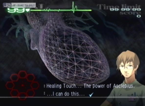 Atlus exploite bien un créneau pouvant toucher au cœur de nos joueurs fans de séries TV. Une touche de techno new-wave, un soupçon d’énigme, voici un super cocktail d’Urgences, de Police Scientifique et presque de X-files. Et oui, une conspiration obscure menace la planète et notre cher docteur Dereck Stiles se devra d’être le grand sauveur de la planète. Le scénario ne donnant pas à notre personnage l’aspect très charmeur d’un Georges Clooney mais ceux d’un jeune freluquet en constante introspection, cette typique touche japonaise du héros plus qu’humain est un ingrédient bien utile à l’identification. Le Shonen, avec une naïveté de novice qui souhaite s’ouvrir au monde, s’épand sur l’occident. Ici l’histoire de Trauma Center : Jouez du Scalpel a été tout simplement transposée ; pourquoi le suffixe "Second Opinion" peut-on se demander ? Le titre est plus adapté car de nombreuses références permettent de théoriser ce choix. Trauma Center : Second Opinion c’est par exemple le nom d’un logiciel médical permettant entre autres de gérer des informations et visuels haute définition. C’est aussi une série médicale permettant aux téléspectateurs à mieux comprendre de s’informer des techniques les plus récentes tout en prenant connaissance des vertus de la médecine traditionnelle, mais d’avoir un apperçu de du point de vue des médecins, et de comprendre les choix difficiles qu’ils se doivent de faire dans le cadre de leur activité. Enfin "Second Opinion" est aussi le titre original de la série Medium, où une femme résout des crimes grâce à ses dons surnaturels de médium. La série Trauma Center met bien en scène des professionnels du monde hospitalier, avec leurs histoires, et un héros malgré lui s’aidant de son don de concentration dont le joueur pourra se servir en dessinant un symbole bien ésotérique : le pentagramme.