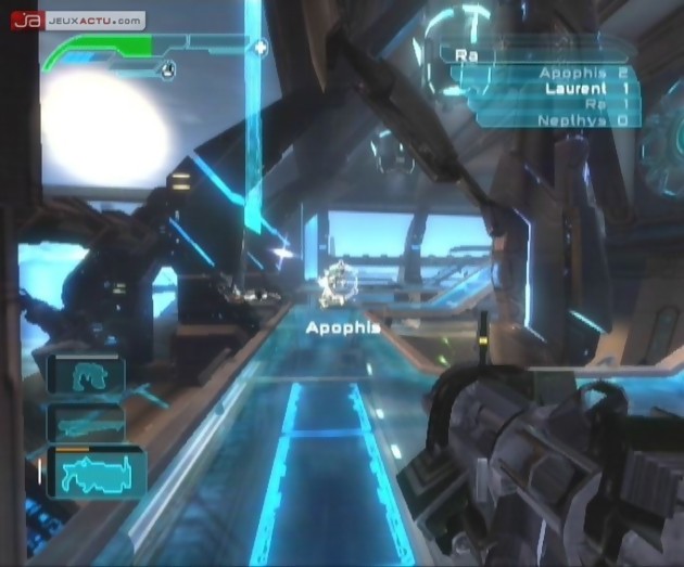 Déjà perplexe à l’annonce de la nouvelle orientation du titre, notre inquiétude grandit une fois le pad en main. Le tutorial, d’ordinaire absent des FPS, ressemble à s’y méprendre à celui d’un jeu de plateformes et, passé l’apprentissage des différents types de sauts, on n’attend qu’une seule chose : retrouver nos bonnes vieilles armes pour commencer le carnage. Il faudra toutefois calmer nos ardeurs et attendre encore un peu en s’accordant quelques instants pour apprendre à maîtriser les subtilités du combat rapproché, ce qui se révélera indispensable par la suite. Pour le reste, on retrouve les ficelles des Unreal Championship, à savoir un character-design qui, s’il ne fait pas l’unanimité, reste facilement reconnaissable, des armes désormais bien connues des joueurs de la série, et l’adrénaline présente depuis quelques volets pour activer différents bonus pouvant faire la différence en plein match.