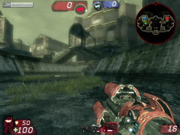 Gears of War s'est pourtant énormément inspiré la licence-phare de l'équipe de Mark Rein. Univers et bestiaire assez proches, même esprit "maximum biscotos – zéro ciboulot", les joueurs d'Unreal n'ont pas été particulièrement dépaysés par la super-production qui a fait exploser la Xbox 360. Mais là où Gears of War tire sa force d'une campagne menée tambour battant, Unreal Tournament III est tout entier construit sur des modes de jeu communautaires. S'il offre tout de même quelques séquences à destination des sociopathes, le solo n'est absolument pas scénarisé et se résume à une succession de cartes dont la seule finalité est de vous faire découvrir les différents modes de jeu et de vous habituer au rythme frénétique des parties. Fidèle à sa propre tradition, le Tournament est en effet une compétition d'une férocité et d'une vélocité hors-norme. Loin de la vivacité arthritique de nombreux concurrents, l'action affiche ici une vigueur surnaturelle, voire tétanisante. Vitesse de déplacement élevée, cadence des flingues rapide, cartes organisées de façon à favoriser les grands moments de stress et les rencontres impromptues au détour d'un corridor, tout semble avoir été pensé pour diminuer drastiquement la part de cardiaques dans la caste des gamers. Le nombre de modes disponibles a même été considérablement réduit depuis UT 2004, afin d'éviter aux utilisateurs de trop se disperser, mais également en vue de garantir un équilibre de jeu parfait. Deathmatch et deathmatch par équipe, Capture de drapeau et CDP avec véhicules, Guerre et Duel, les tueurs forcenés ne risquent pas de se perdre dans les règles. Cette relative austérité est bel et bien compensée par un level design imparable, un arsenal idéal et une efficacité remarquable.
