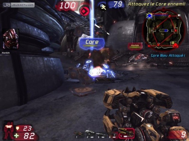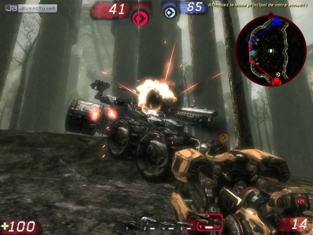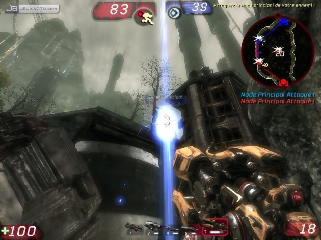 De la réactivité, il vous faudra en faire preuve à chaque instant de cet Unreal Tournament III, et tout particulièrement dans les affrontements furieux du bien-nommé mode Guerre. Dans celui-ci, deux équipes s'affrontent et doivent détruire le générateur de la base adverse en l'arrosant copieusement de balles. Pour pouvoir y parvenir, vous devez préalablement prendre le contrôle – et le garder – d'un certain nombre de générateurs alternatifs (les nods) dispersés sur la carte. Pour vous imposer à chaque checkpoint, vous devez détruire le noyau énergétique de votre ennemi si celui-ci occupe déjà les lieux, tâche longue donc dangereuse, ou le convertir en apportant sur place une sphère d'énergie produite dans votre base. Le porteur de la sphère, qui peut faire basculer le cours de la bataille, devient alors une cible et la destruction de votre précieuse baballe constitue l'un des principaux objectifs de vos opposants. C'est stressant et ludique, mais la tâche est malaisée si les deux équipes en présence sont d'un niveau équivalent, chaque nod passant alternativement d'un bord à l'autre sans qu'aucun camp ne parvienne à prendre l'ascendant. L'extrême hétérogénéité des participants en ligne (pourvu que ça dure !) limite pour le moment ce genre d'incidents, mais d'ici quelques mois, lorsque la communauté se sera stabilisée, les parties risquent de se jouer sur le fil.