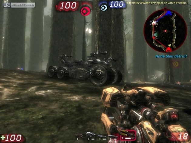 La plus grande innovation réside finalement ici dans l'importance accordée aux véhicules. Apparus dans UT 2004, ceux-ci reviennent en force, et en nombre. Neuf chez les Axons, le camp "humain", six chez les Necris, civilisation aussi hideuse que haineuse, les engins roulants et volants modifient considérablement les schémas stratégiques à élaborer pour triompher. Réservés aux cartes les plus vastes et aux seuls modes CDP avec véhicules et Guerre, les montures se manient vraiment différemment les unes des autres, et se complètent intelligemment. A la toute-puissance de chars de divers gabarits, dont le maître est indéniablement le Leviathan, monstruosité métallique dotée de tourelles multiples, répond la vivacité de petites et fragiles cylindrées. Face aux uns comme aux autres, les chances de survie du piéton violent s'amenuisent mais ne disparaissent pas totalement, d'autant que sur les grandes cartes, vous disposez d'un hoverboard, sorte de planche de surf à moteur qui rappellera quelques souvenirs aux joueurs de Tribes et vous permettra de vous éloigner du feu. Même sans faire appel à ce compagnon motorisé, si vous possédez quelques armes puissantes et faites preuve d'une réactivité sans limite, vous parviendrez à limiter la casse, au moins le temps de vous mettre à l'abri.