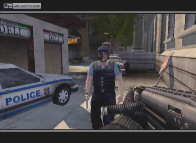 Pyromanes oblige, Urban Chaos : Violence Urbaine use et abuse de flammes et d’effets de chaleurs venant déformer des textures pourtant grossières et, histoire de ne pas vous laisser seul dans ce feu de l’action, les missions vous proposeront régulièrement une aide en la personne de pompiers ou de secouristes que vous pourrez commander. Excellente idée au départ, la trop grande linéarité du jeu viendra malheureusement couper les pattes de cette initiative, réduisant généralement le rôle de ces forces d’interventions à une simple ouverture de porte ou une extinction de feu. Seuls quelques rares objectifs comme sauver des civils d’un bâtiment en flammes viendront alors casser la routine, plus ou moins efficacement. Malgré tout, on se surprend à se prendre au jeu, sûrement rattrapés par nos rêves d’enfance qui consistaient à rejoindre ces hommes d’élite, et dopés par un récent sadisme à faire taire des terroristes insultant nos mamans avec un dictionnaire d’insultes bien fourni. Les nombreux objectifs secondaires comme réaliser un nombre d’arrestations en règle ou de headshots bien placés viendront enfin relancer l’intérêt des perfectionnistes qui pourront ainsi s’amuser à débloquer les quelques 204 médailles disponibles pour améliorer les armes et offrir de nouveaux équipements mais, de manière générale, il faut avouer qu’on ne jouera guerre plus d’une demi-heure d’affilé sous peine d’avoir l’impression de tourner en rond.