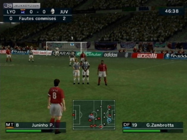 Vous regrettez la bonne époque des jeux de football arcade ? Vous allez être servi avec le titre de Sega qui, au-delà du classicisme de son menu des tactiques, propose un gameplay obsolète. Ce constat se fait sentir après le coup de sifflet de l’arbitre avec une vitesse de jeu rapide qui nous offre des matchs certes très dynamiques mais extrêmement confus la faute à une mauvaise précision des balles. Vous avez beau dirigé le stick ou le pad vers l’un de vos collègues de jeu, votre joueur balancera la balle à qui en voudra au risque d’allumer un adversaire sur sa trajectoire ou dans le pire des cas, il l’enverra en dehors des lignes du terrain. Ces erreurs de jugements ne sont en fait que les effets indésirables d’une pitoyable gestion physique de la balle. Oubliez les frappes mollassonnes de FIFA 06, dans Virtua Pro Football, la moindre patate part comme une fusée tant et si bien qu’on peut s’amuser à cadrer ses frappes du milieu de terrain afin d’admirer avec quelle adresse le gardien récupère le ballon sans broncher. Dommage qu’il n’en fasse pas autant lorsqu’on se retrouve dans la surface de réparation où il perd tous ses moyens et plonge quelques secondes après que la balle soit dans les filets. A cette physique de balle plutôt médiocre se greffe une Intelligence Artificielle pas bien brillante qui se contente de suivre bêtement le porteur de la balle et qui tente, ici ou là, d’intercepter le ballon sans grand enthousiasme.