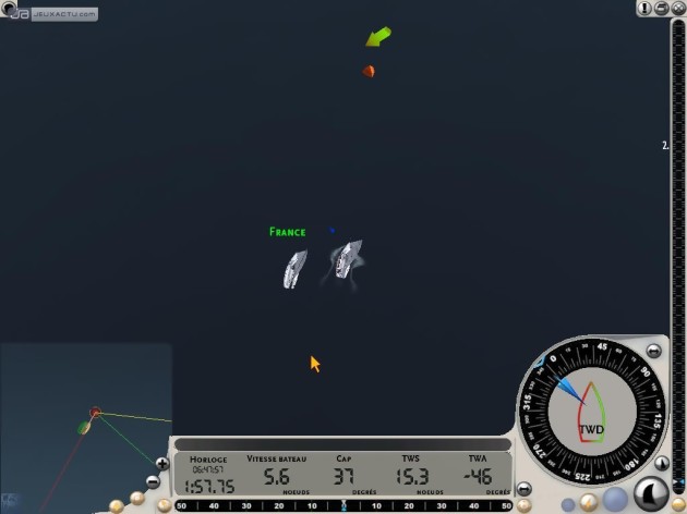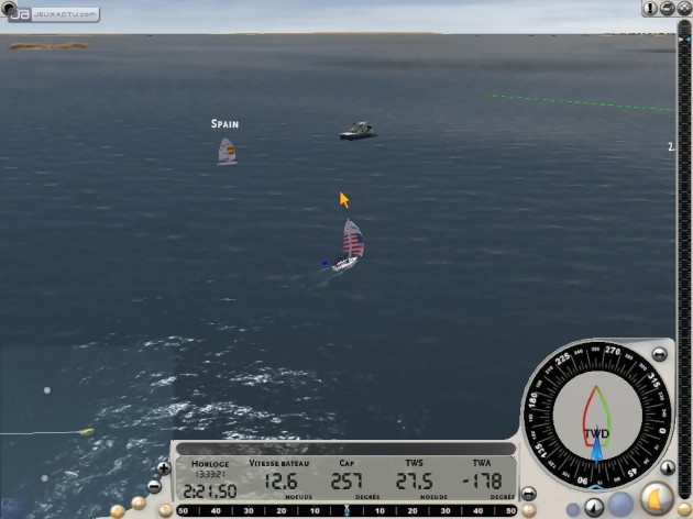 Les passionnés de voiles ne sont pas légions dans notre pays ou tout au moins nous pourrons dire que ce sport reste assez méconnu du grand public. Aussi, les néophytes peuvent légitimement se demander si un tel titre pourrait leur convenir et s’il ne serait pas trop technique. Mais que l’on se rassure, Virtual Skipper 5 répond aux attentes de tout le monde. Les puristes pourront configurer leur partie de manière à respecter scrupuleusement les règles de l’ISAF et ne naviguer qu’à l’aide des instruments de bord. A l’inverse, les novices bénéficient d’une foulée d’indicateurs en tous genres pour les épauler dans leur navigation : flèche directionnelle du vent, affichage des marques du parcours et des laylines, etc. Les parties sont d’ailleurs un peu plus accessibles dans ce sens et un tutorial complet permet de s’initier aux subtilités de la pratique de la voile : apprendre à se placer par rapport au vent ou jouer sur les différentes voiles (foc, spi, etc.) pour gagner de précieuses secondes, négocier correctement un virage ou bien encore assimiler les dissemblances comportementales qui existent entre les différents types de navires disponibles. Conforté par le succès de Trackmania, Nadéo y applique le même community model. L’éditeur permet de créer très simplement ses propres parcours et les modeleurs en herbe pourront importer leur création dans le jeu et ainsi enrichir le nombre de navires disponibles. Si le mode en ligne décuplait la saveur particulière de Virtual Skipper 4, ce nouvel opus le met davantage en avant en adoptant un système de ladder identique à celui de Trackmania United. Autrement dit, il faut arriver à accéder dans le haut du classement de son département pour se hisser dans la compétition régionale, puis nationale et internationale. Côté réalisation, on ne trouve presque rien à redire. Les bateaux sont modélisés avec soin et la réalisation de l’eau flatte sérieusement la rétine. On regrettera un peu que les rivages des plans d’eaux soient un peu aliasés mais ce n’est pas le plus important. Niveau durée de vie, on ne peut pas non plus s’en plaindre. En sus du furieux mode en ligne, il est possible de participer à des courses simples, des coupes fictives et bien entendu de disputer la 32ème Coupe de l’America. On pouvait reprocher auparavant à Virtual Skipper de ne pas proposer de véritable challenge pour le joueur en solo. Cette compétition comble donc cette lacune avec brio. Comme dans la réalité, il faudra d’abord se qualifier pour les demi-finales via la Louis Vuitton Cup pour ensuite affronter les vainqueurs de la session précédente : Alinghi. Le niveau est assez relevé car chaque erreur se paye au comptant : les petits tricheurs adeptes de l’option "recommencer" ou de la sauvegarde sont invités à passer leur chemin.