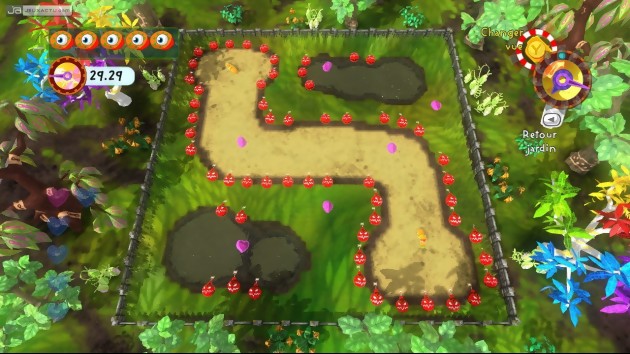 Pour ce qui est de l’interactivité, un défaut très remarqué dans le premier opus a enfin été corrigé. Désormais la caméra ne stagne plus comme si elle était myope, et il est bien plus aisé et agréable de parcourir le jardin en vue éloignée, en jouant avec le zoom autant que de besoin. Mieux encore, la visibilité s’est améliorée puisqu’il est possible de reculer au-delà des limites du jardin pour mieux le contempler ou bien observer les Piñatas rodant aux alentours, et afficher les pré-requis pour en faire des résidentes. Le jardinier sera moins désœuvré étant donné qu’il pourra également prendre les mesures nécessaires pour éloigner un indésirable ou même l’éliminer dès son entrée avant que celui-ci ne fasse des dégâts. Un autre bon point sur le jeu est l’arrivée du radar Piñata. Auparavant, à la caméra trop limitée s’ajoutait la difficulté de retrouver un pensionnaire précis. En effet, aucun moyen rapide d’accès n’était proposé pour faire défiler les Piñatas acquises. Assurément cet outil est perfectible car à partir d’un certain nombre de Piñatas obtenus, cela prend un peu de temps pour faire défiler la liste, bien que son introduction soit quand même un progrès. Le panneau d’interdiction posé en bordure constitue un répulsif efficace en interdisant l’accès à une espèce de Piñata désignée. Pour ne pas trop faciliter la tâche, seules les espèces dont le jardinier aura été l’entremetteur pourront être désignées.