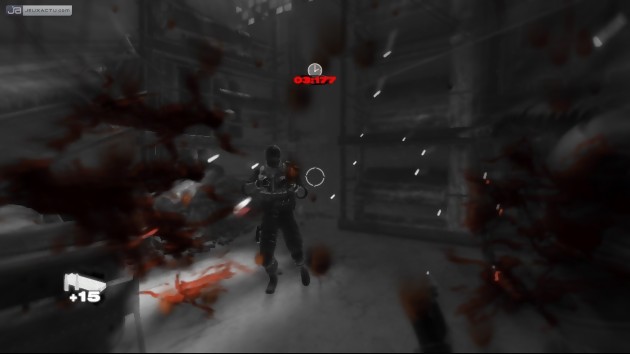 Toutefois, Wanted : Les Armes du Destin possède de forts liens de parenté avec le film produit par Universal, à commencer par ses nombreuses séquences de gunfight. L’essence même du jeu étant basé sur ces combats aux armes à feu, GRIN Studios a opté pour un rendu proche de celui Gears of War, la référence du Third Person Shooter aujourd’hui. C’est donc sans grande surprise qu’on retrouve cette caméra placée non loin de l’épaule du personnage, cette visée qui permet de prendre en joue les ennemis qui nous font face et ce désormais fameux système de couverture qui permet de s’abriter des tirs ennemis. C’est d’ailleurs sur cet aspect que les développeurs ont le plus lourdement insisté. Si les deux épisodes de Gears of War ont réussi à imposer le duck & cover, Wanted : Les Armes du Destin apporte sa petite touche grâce à des déplacements d’une planque à une autre ingénieux et surtout ultra fluides. A l’écran, cela se traduit par une direction à donner avec le stick analogique droit qui indiquera quelles sont les endroits où l’on peut se rendre, en prenant soin de ne pas se prendre une bastos entre les deux yeux. Sprint, petit saut, glissage sur les genoux, roulade au sol ou simple rotation sur soi-même, les mouvements opérés pour se déplacer entre chaque planque se fait avec une certaine classe et une ergonomie à toute épreuve. Une petite trouvaille qui vaut se pesant d’or, d’autant que l’intelligence artificielle peut elle aussi se déplacer de la sorte. Puisque les ennemis ont un Q.I. qui dépasse la moyenne, avec cette fâcheuse habitude à rester caché derrière un élément du décor, les développeurs ont eu la fraîche idée de réutiliser les tirs incurvés, repris du long-métrage. A l’instar de ce dernier, cette faculté se débloque au cours de l’aventure et Wesley peut se rendre dans un abattoir pour s’entraîner à faire courber la trajectoire de ses balles. En maintenant l’une des touches de tranche de la manette et en choisissant la trajectoire avec le stick analogique droit, le joueur peut donc atteindre tous les ennemis qui ont tendance à rester couvert. Cependant, une seule balle ne suffit pas toujours à les tuer, à moins d’avoir trouvé l’angle parfait, ce qui permettra de profiter d’une petite séquence où l’on soit de manière subjective la trajectoire de la balle. Effet garanti.