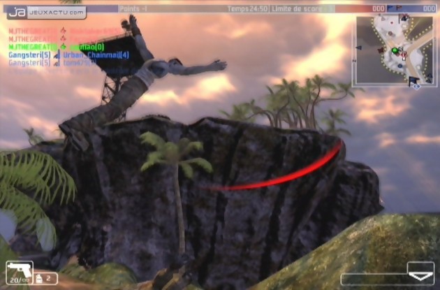 Ce qui l’est moins en revanche, ce sont les fantassins. Jouissant d’une animation assez risibles, les soldats dans Warhawk ont bien évidemment du mal à faire le poids face aux autres engins. Certes, ils disposent de tout un attirail qui leur permettent de se défendre bec et ongles, mais il est assez rare de sortir vainqueur d’un affrontement face à un Warhawk ou une tourelle de défense, qui utilisent des armes bien plus performantes. C’est pourquoi, il est assez utile d’unir ses forces pour attaquer à plusieurs. Et pour cela, la jeep est l’engin adéquat pour accueillir plusieurs soldats. Capable de transporter jusqu’à trois fantassins, la jeep est un véhicule tout-terrain qui compense son blindage léger grâce à une sa vitesse. Malheureusement, il est conseillé d’être au moins deux soldats pour pouvoir l’utiliser correctement, la conduite et le tir à la mitraillette n’étant pas possible en solo. Dans la même veine, le char permet aussi à deux soldats de jouer en tandem. Evidemment lent, ce dernier se montre féroce pour percer les lignes ennemies et détruire rapidement les appareils aériens en plein vol. Afin de dynamiser l’action, des items sont posés un peu partout sur la map, afin de recharger ses munitions et éviter de se retrouver avec comme seule arme un simple couteau. Mieux, certains bonus permettent de réparer son appareil et ce, même en plein vol.