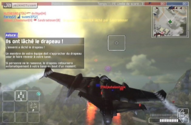 Fort heureusement, Warhawk tire toute sa force grâce à son action trépidante et à un choix relativement varié de véhicules en tout genre. Jeeps, tanks, tourelles de défense, engins volants (Warhawk et Némésis) ou bien à pieds, peu importe le moyen de déplacement, le joueur est opérationnel pour faire la guerre au voisin. Compte-tenu de la taille assez démesurée des cartes, ce sont les deux véhicules aériens qui sont immédiatement pris d’assaut par les joueurs. D’aspect différent, le Warhawk et le Némésis présente en réalité les mêmes fonctionnalités en matière de maniabilité, seuls le type d’armes changent. Grâce à leurs commandes avancées, ce sont évidemment les appareils les plus complets, capables aussi bien de venir en renfort envers d’autres unités, que de lancer un assaut en solo à la base ennemie. Leur comportement et la maniabilité des avions étant très souple, le joueur est capable d’esquiver la moindre attaque sans trop de difficulté. Le stick analogique droit permet en effet à l’engin de réaliser des figures aériennes assez impressionnantes, permettant par la même occasion d’échapper à un missile, même à tête chercheuse. Autre distinction de ces engins volants : ils ont la faculté de passer en vol stationnaire en appuyant sur le bouton Triangle. Cela permet ainsi par exemple d’éliminer des fantassins qui auraient tendance à rester camper au même endroit, ou bien alors faire le ménage dans le QG de l’ennemi, pendant que ce dernier est en vadrouille sur la carte. Plutôt poilant.