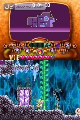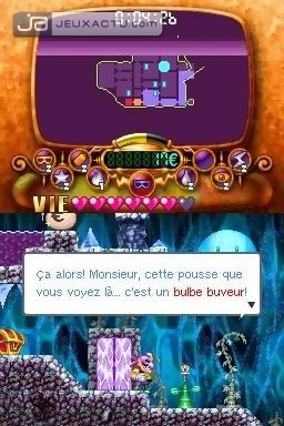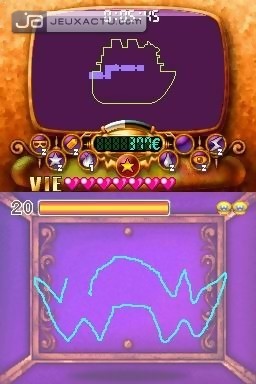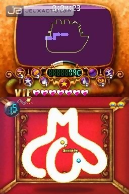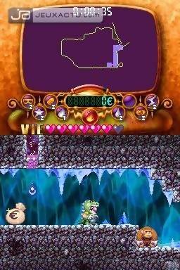 La reconnaissance tactile est l'autre point noir du jeu. En effet, il n'est pas rare de devoir répéter la manoeuvre pour que le symbole soit bien pris en compte. L'inverse est également valable. En Wario Artiste par exemple, un losange peut matérialiser un bloc alors qu'il faut lutter des heures pour créer un coeur, même en y mettant toute sa santé. Idem lorsque l'on souhaite changer de costume, l'imbroglio dragon-matelot est arrivé plus d'une fois. L'instinct reprend parfois le dessus, et il faut reconnaître que dans le feu de l'action - notamment contre les boss - on gratte maladroitement hors de Wario, alors que c'est la règle n°1 du processus. Graphiquement, Wario : Master of Disguise ne casse pas des briques. Si le moustachu obèse possède quelques animations fines et détaillées lorsqu'il change de sape, il en est pas de même pour les monstres qui s'apparentent plus à des sprites basiques. Pas de scrolling différentiel, ni même d'effets pyrotechniques, on nage en plein cours élémentaire. Bon allez, on a quand même craqué pour l'un des thèmes principaux du jeu, celui où Wario et Cannelloni s'échangent quelques vannes bien senties. C'est aussi ce qui sauve un peu Master of Disguise de la déroute totale, un humour pas très fin mais suffisamment light pour être digeste. Une fois terminé, on peut toujours améliorer ses stats en revisitant les niveaux avec tous les déguisements en sac. Mouais.