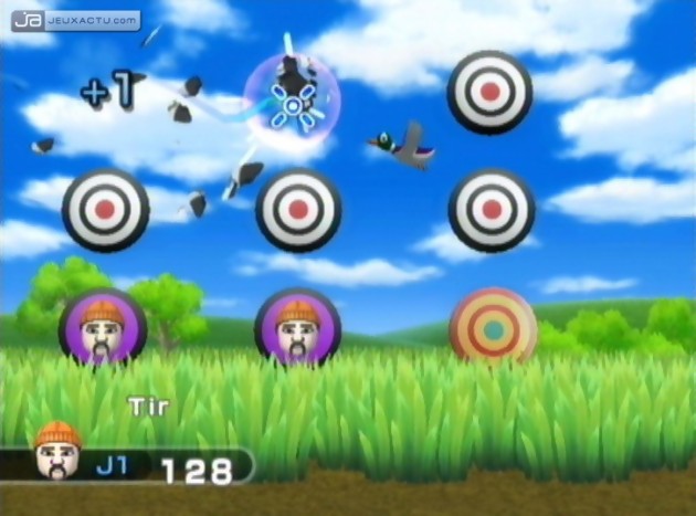 Tout aussi fun et encore plus ludique, le jeu du "où est Charlie" (ou plutôt "où est le Mii") est certainement l’épreuve sur laquelle nous avons passé le plus clair de notre temps dans Wii Play. L’objectif est simple : réussir en un temps record les missions qui sont affichés en début de partie. Retrouver 2 sosies, retrouver son Mii, découvrir le Mii le plus rapide, débusquer le Mii bizarre (celui qui ne fait pas comme les autres), on se pique rapidement au jeu, d’autant que la mise en scène minimaliste est le plus souvent réussi, puisque réalisée sur le ton de l’humour. Le joueur doit donc faire preuve de concentration et de rapidité pour être le premier à trouver le ou les personnages cachés. Parmi les jeux les plus amusants et toujours aussi ludiques, on peut citer le mini-jeu numéro 4. A l’aide de son Mii, l’astuce consiste ici à copier la pose qui s’affiche à l’écran via une petite bulle de savon, le tout sur fond d’images nature ou psychédéliques. Il faut à la fois prendre en compte la position du Mii mais aussi de sa silhouette. Là aussi, plus on enchaîne les niveaux et plus la difficulté augmente, si bien qu’à la fin, c’est un déluge de petites bulles qui défilent à l’écran avant de nous noyer complètement. Dans un autre registre, il y a le billard avec lequel on passera également du bon temps. La Wiimote remplaçant virtuellement la queue de billard, le joueur doit alors doser la force de sa frappe pour réussir à rentrer les bonnes boules dans les bons trous, sans y voir une quelconque métaphore lubrique. C’est amusant comme cette course de vache qui nous permet de maintenant la Wiimote à l’horizontale et de diriger ces bipèdes au comportement un peu lourdaud.