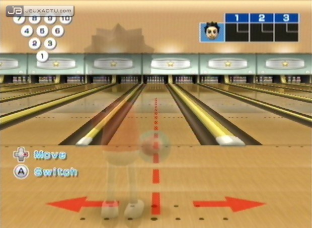 Moins intéressant : le base-ball. Ici, il se résume à deux types de jeu : le lancer et la frappe. Là aussi, il faudra se contenter du strict minimum puisque la Wiimote ne gère rien d’autre que ces deux mouvements basiques. Autant être franc et ne pas perdre de temps, le base-ball est certainement le sport le moins intéressant de toutes les activités proposées. On s’amuse les premières minutes mais rapidement, l’ntérêt tombe rapidement à plat. Fort heureusement, le bowling vient rehausser le niveau avec des parties fichtrement addictives, grâce notamment à une détection plutôt réussie des ses mouvements. Mieux, en appuyant sur la touche A, il est même possible de donner une direction à la boule, afin d’enchaîner un maximum les strikes et autres supers. Dans la même veine, le golf propose une reconnaissance des mouvements assez bien fichue dans l’ensemble mais on regrette en revanche un nombre de parcours assez limité et l’absence d’un véritable objectif pour nous tenir en haleine plus longtemps. Reste alors la boxe qui nécessite l’utilisation du Nunchuk et propose les mouvements les plus basiques de ce sport. Droite, gauche, crochet, frappes au ventre, protection, esquive, il y a de quoi se piquer au jeu, d’autant qu’il est possible de brûler quelques calories au passage. Chouette.