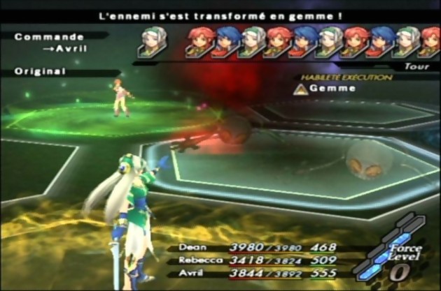 Pour ce qui est du système de jeu, et notamment de combat, Wild Arms 5 s’appuie sur le cœur du quatrième volet : le HEX Battle System. Toujours répartie sur sept hexagones, la surface de combat (dont la configuration varie en fonction des adversaires) peut être définie comme étant l’addition du même nombre de microcosmes sur lesquels se déplacent les combattants. Sans rentrer dans les détails qui concernent les Leys – les classiques influences élémentaires, en fait –, rappelons que chaque alvéole permet d’accueillir plusieurs membres d’un même parti, et que chaque action à laquelle elle sera soumise affectera l’ensemble des forces qui l’habitent. Pousser les ennemis à se réunir sur le même HEX pour cumuler les dégâts, où rassembler sa troupe pour un soin global ou une attaque en duo contribue à renforcer la dimension tactique apportée par ce mini damier. Par ailleurs, ambiance western oblige, les armes employées ici sollicitent la poudre à canon, ce qui nous oblige à composer avec les restrictions liées à leur barillet et au tour de recharge qu’elles imposent. Pas bête. Ces caractéristiques couplées à des animations de combat minimalistes, voire inexistantes qui dynamisent le tout, permettent au HEX Battle System s'imposer comme un excellent système de combat. En fait, les seuls regrets viennent de la fréquence abusive des rencontres (problème qui peut tout de même être réglé après avoir purifié le Soleil Noir de la zone traversée) et du manque difficulté du titre, problème qui plus est bien aidé par le la progression entièrement modulable mis en place. En effet, outre les classiques compétences glanées à l’aide des Mediums – une sorte d’artefact magique – lors des montées en niveaux, il possible de sacrifier quelques points de sa jauge de vie afin de s’équiper d’une capacité en voie d’acquisition. Bien entendu, il est possible d’annuler ces changement à tout moment. Dans le même ordre d’idée, il est possible de renforcer ses ARMs grâce aux Fossiles de Dragon, ce qui ne rend pas les changements de caractéristiques irréversibles pour autant. Vous l’aurez compris, à aucun moment Wild Arms 5 ne se montre lourd, fatiguant, voire exaspérant. Au contraire, cela fait bien longtemps qu’un titre ne nous a pas transportés aussi agréablement.