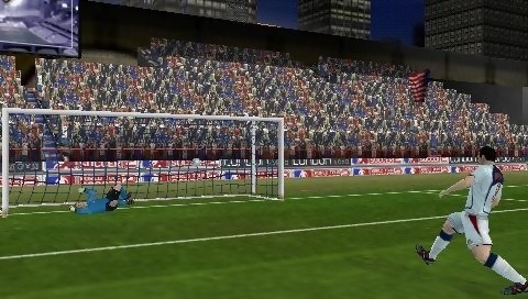 World Tour Soccer n’est pas une nouvelle licence comme on pouvait le croire (ou l’espérer) en septembre dernier. Sony a tout simplement changé de nom pour faire oublier aux joueurs les déboires de la franchise Le Monde des Bleus ou This is Football. Appelez-la comme vous voulez, toujours est-il que la série de Sony n’a jamais effrayé les mastodontes Pro Evolution Soccer ou FIFA. Et ce n’est pas avec ce nouvel opus que l’éditeur arrivera à la cheville des deux jeux cités même s’il faut bien avouer que la qualité footballistique n’est pas vraiment au rendez-vous sur PSP, si on compare les différents produits à leurs homonymes sur consoles de salon. Mais avec World Tour Soccer 2, Sony privilégie plutôt le plaisir de jeu instantané au sens où les modes de jeu proposés vous tiendront en haleine de longues heures. D’entrée de jeu, on pourrait croire que World Tour Soccer 2 n’affiche que 2 modes de jeu originaux à savoir mode "World Tour" et mode "Médaille". Pour ce qui est du tour mondial, il ne s’agit en aucun cas d’un pseudo mode Coupe du Monde car ici, vous devrez affronter toutes les équipes internationales, une à une, afin de débloquer de nouveaux continents, rencontres et équipes. Autant dire qu’il faut être patient pour devenir l’équipe mondiale n°1. Le mode "Médaille", quant à lui, fait la part belle aux challenges. 10 défis vous attendent et mettront à rude épreuve vos talents de passeur, de finisseur ou de tacticien. Selon les consignes, vous devrez respecter une zone de jeu, faire un maximum de passes ou marquer avec tel gars pour remporter le challenge. D’ailleurs à la manière de World Tour Soccer : Challenge Edition, votre total de points glanés est affiché à l’écran. Le gameplay, résolument arcade, vous oblige à être un fervent admirateur du football total. Faire tourner le ballon à tous ses partenaires, jouer les Ronaldinho balle au pied, être un défenseur hors pair ou un buteur d’exception vous permettra d’engranger les points sans souci. Et force est de constater que les points bonus ne sont pas des plus difficiles à obtenir, la faute à une maniabilité plutôt limitée et des adversaires assez peu finauds.