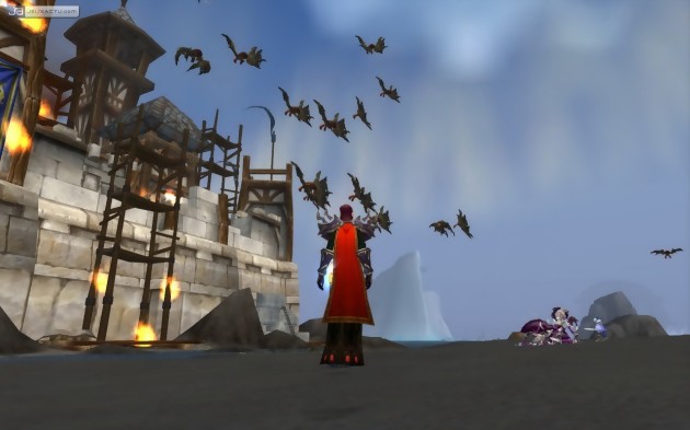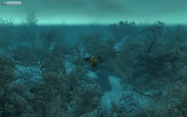 Surfant sans vergogne sur le succès du plus grand chef d'œuvre cinématographique que la Terre aie jamais porté (d'après ma concierge…), les développeurs de Blizzard ont eux aussi décidé de nous emmener dans le Nord. Ou plus exactement dans le Norfendre. Ce vaste continent gelé, déjà aperçu dans Warcraft III mais totalement inédit dans World of Warcraft, possède naturellement son lot de nouvelles créatures, quêtes, récompenses, boss et instances… dont beaucoup peuvent se parcourir à dix. On y trouve même une zone dédiée au PvP, le Lac Joug d'Hiver, qui introduit une autre promesse datant des premières années de développement du jeu : les machines de guerre. Ces engins de siège permettent à l'équipe assaillante de mettre à mal les défenses du fort assiégé. Une récréation sympathique, qui ne bouleversera tout de même pas la vie des adeptes du PvP. Par ailleurs, les différentes régions qui composent le Norfendre possèdent toutes un certain charme, voire un charme certain. En effet, fidèle à son habitude, le studio californien impose sa patte graphique, tendance cartoon, qui masque à merveille les limitations du moteur 3D. Ce dernier profite quand même de l'extension pour monter en puissance. Pour peu qu'on coche les bonnes options, la distance maximum d'affichage augmente nettement et des ombres détaillées font leur apparition. Figurent également au menu de WoW : Wrath of the Lich King de nouveaux talents pour toutes les classes, puisque le niveau maximum des personnages passe de 70 à 80, des montures innovantes qui autorisent le transport de plusieurs passagers ou même de marchands, et un nouveau métier : la calligraphie. Ceux qui choisiront cette profession pourront inscrire dans leur grimoire des glyphes, écritures magiques qui permettent d'améliorer sensiblement les sorts (réduction du coût de mana ou du temps de recharge, augmentation de la durée ou de la puissance de l'effet…). Enfin, le tour des principales nouveautés du jeu ne saurait être complet sans évoquer les Hauts Faits, inspirés des succès de la Xbox 360 ou de certains jeux Steam. Achever mille quêtes, vaincre tel ou tel boss, collectionner quinze mascottes, obtenir dix montures… sans utilité réelle autre que la fierté de les avoir accomplis, les Hauts Faits disponibles se comptent par centaines et couvrent des domaines très variés. Une motivation supplémentaire, s'il en fallait une, pour ne jamais lâcher le monde de Warcraft…