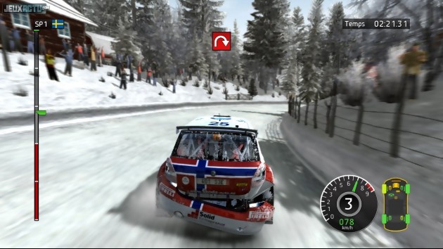 Ne faisons pas durer le suspense plus longtemps : WRC est une sacrée déception. Visuelle tout d'abord, avec une modélisation des véhicules qui manque cruellement de caractère. Quand on a mangé du SEGA Rally et que l'on voit les merveilles que Codemasters est capable de produire avec son EGO Engine - la série Colin McRae : DiRT entre autres -, on se dit qu'il y a un problème quelque part. Les textures sont archi laides, les environnements ultra vides et les effets inexistants. Sans doute le prix à payer pour ne pas s'embarrasser avec des ralentissements foireux, l'animation de WRC se montrant particulièrement solide. Pour autant, la sensation de vitesse est loin d'être convaincante, au même titre que les dégâts qui sont beaucoup mieux retranscrits chez les voisins. Enfin, la vue cockpit fait mal au crâne, et on se demande sincèrement comment de telles approximations au niveau de l'intérieur des machines peuvent encore exister à l'heure actuelle. Après s'être détruit les yeux pendant quelques courses, on peut enfin se concentrer sur le contenu de WRC qui sauve les meubles. Heureusement d'ailleurs, puisqu'il s'agit quand même de la licence officielle, ce qui inclut non seulement les pilotes que les lecteurs de L'Equipe connaissent par coeur (Sébastien Loeb naturellement, mais aussi Mikko Hirvonen, Sébastien Ogier, Marcus Gronholm, ou bien encore Petter Solberg), mais aussi les circuits officiels figurant au calendrier du championnat - Nouvelle-Zélande, Turquie, Mexique, Finlande, Alsace, Japon pour ne citer que ceux-là. Bien sûr, toutes les écuries sont contenues dans la galette du jeu, et on apprécie également le fait que les copilotes ne soient pas restés au placard. Enfin presque, car ils se montrent assez fébriles en lisant les notes. Comme on pouvait s'y attendre, WRC dispose d'un mode "Carrière" dans lequel il va falloir gravir un à un les échelons pour parvenir l'élite mondiale, en remplissant toutes sortes d'objectifs. Avant d'être en mesure de piloter une WRC comme les grands, il va falloir faire ses preuves et se contenter d'une J-WRC pour débuter ; autant dire que l'on s'ennuie ferme pendant les premières heures de jeu. Une Suzuki Swift ou une Citroën C2, c'est vrai que ce n'est pas très enthousiasmant.