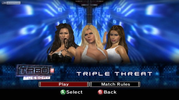 Faisons fi cette année des sempiternelles explications concernant les différences fédérations de la WWE et concentrons nos efforts du côté du jeu en lui-même. Réputée pour son exhaustivité en matière de contenu, la série des WWE Smackdown ! VS Raw s’étoffe de plus belle par l’intégration de nouveaux modes de jeu, permettant de gonfler un peu plus une durée de vie déjà bien conséquente. Que ce soit du côté du nombre de catcheurs disponibles, des salles ou bien de la palette de coups, WWE Smackdown ! VS Raw 2007 ne peut que combler le fan avide de ce sport macho et viril. Enfin pas tout à fait puisque parmi les 67 catcheurs recensés, la gent féminine a également son mot à dire. Avec leur silhouette aguicheuse et leurs positions souvent sous-entendues, difficile de détourner le regard lorsqu’elles se crêpent le chignon ou s’arrachent les vêtements. Avec un public composé essentiellement de fans mâles, pas étonnant que les organisateurs aient misé sur le sexe dit faible. C’est tant mieux pour nous, d’autant que la modélisation des catcheuses et catcheurs a gagné en réalisme. Et avec l’aide de la HD, on a comme l’impression parfois d’assister à un véritable match de catch à la télé. Muscles saillants, expressions faciales, animations plutôt réussies, il manque juste un peu de souplesse dans certains mouvements pour que WWE Smackdown ! VS Raw 2007 parvienne à faire comme en vrai.