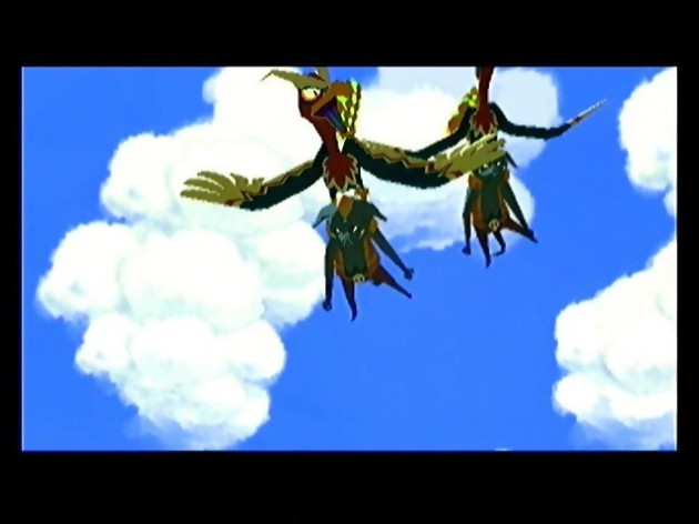 Une autre surprise provient du thème principal, qui n’est pas le thème original de la saga. Un peu déroutant au début, celui-ci reste parfaitement dans l’ambiance, comme tous les autres mélodies qui accompagneront les îles que vous visiterez. Angoisse, émotions, rires, frissons, une fois encore, le génie musical de Nintendo nous prouve qu’ils ont de très grands compositeurs. Après avoir montré ses talents de flûtiste et de joueur d’ocarina, Link passera derrière le pupitre et se la jouera chef d’orchestre. Les 6 airs que vous aurez l’occasion de diriger avec votre baguette feront de vous un véritable Dieu du vent puisqu’il sera possible, outre de diriger la direction du vent, de réveiller les ouragans ou d’hypnotiser certaines personnes pour résoudre les énigmes les plus tordues. Un peu à la manière du ventre de Jabu-Jabu dans Ocarina of Time où il fallait composer avec la princesse Ruto pour sortir du donjon. Parlons-en justement des donjons, généralement le gros point fort des Zelda, avec ses puzzles indéchiffrables, ses étages interminables et la pression que monte dans chaque pièce, de peur de tomber sur une horde de chauve-souris alors qu’il ne vous reste plus qu’un petit cœur, ou de tomber face à un Boss intermédiaire, qui n’a d’autres ambitions que de vous pousser dans le vide. Et bien là, les donjons sont de petits temples assez anodins, sans passion et avec des monstres pas bien méchant. Heureusement, dans chaque pièce, il s’opère une certaine magie qui nous fait dire à chaque nouvelle énigme « Oh, c’est chouette ça ! ». Les Boss sont pour leur part de véritables monstres prenent pour certains la place de plusieurs écrans mais là encore, quelques minutes suffiront pour en venir à bout. Avec seulement 6 donjons, on reste un peu sur notre faim à la fin du jeu.