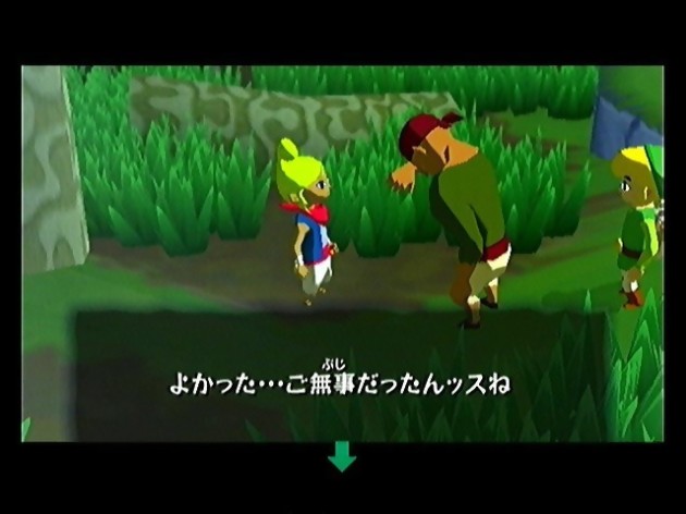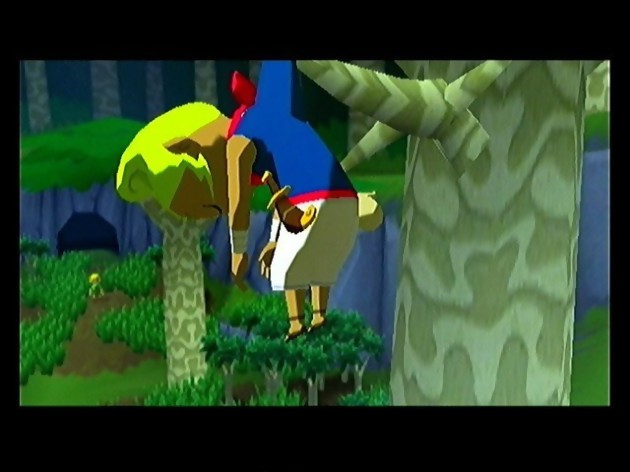 The Legend of Zelda : The Wind Waker se déroule donc une centaine d’années après la chute de Ganondorf dans l’Ocarina du temps. De manière surprenante, Link, que nous avions quitté adulte, est désormais un bambin en pyjama bleu, vivant paisiblement sur une petite île avec sa grand-mère et sa petite sœur Aryll. Alors que l’histoire débute sur une bête erreur d’enlèvement, la suite de l’aventure s’annonce bien plus complexe, rassurez-vous. La première chose qui frappe dans The Legend of Zelda : The Wind Waker provient du style graphique adopté avec le cel-shading. Alors qu’on pensait Nintendo déterminé à faire mûrir ses jeux et en particulier ses personnages fétiches, Link prend ici un sacré coup de jeune et nous prouve que l’on a pas besoin d’être grand pour devenir un héros. Pour ceux qui sont encore perplexes quant à ce choix osé, je n’ai qu’un conseil à vous donner, essayez-le ! Sans atteindre la perfection graphique d’un Metroid Prime, le cel-shading permet de transformer tout l’univers d’un jeu en véritable conte de fées. Certes, il y aura toujours quelqu’un pour trouver que les textures sont plates, les couleurs fadasses et l’animation limitée, pourtant ce Zelda atteint la perfection dans tous les domaines. Les mimiques de Link sont craquantes, ses yeux ultra expressifs et la façon dont il se tord de douleur est tout simplement irrésistible. Certes, la mer est toujours plate, mais entre les traînées du vent, les touffes d’herbe qui bougent quand on marche dessus, les reflets du soleil et les formidables effets de lumière provenant des éclairs, on oublie vite tout ce qu’il peut manquer par rapport à un véritable jeu en 3D classique. Miyamoto ayant voulu revenir sur l’enfance de Link, en faisant peut-être de lui un éternel enfant. Ce choix du cel-shading se justifie d’autant plus.