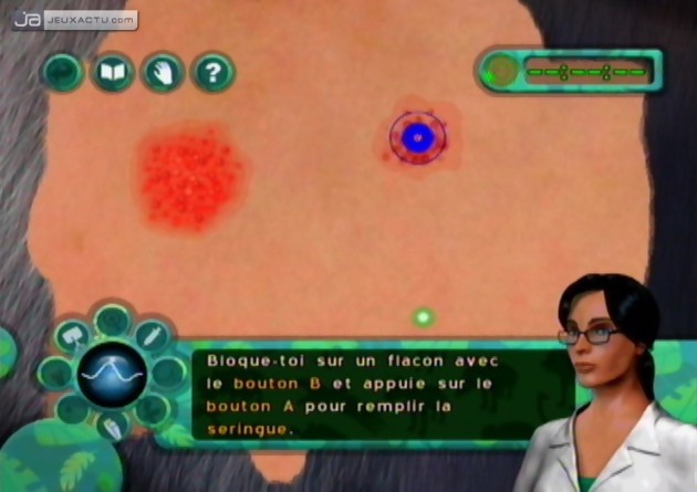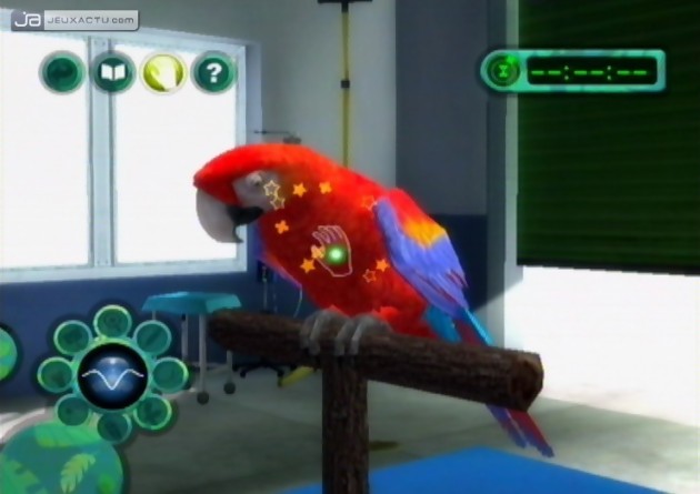 Futile et certainement écrit entre deux stations de métro (ou de bus, c’est selon), le scénario de Zoo Hospital n’a qu’un seul but : obliger le joueur à enchaîner les interventions chirurgicales sur des patients aussi divers que variés. Perroquet, chimpanzé, tapir, éléphant, mandrille, otarie, chameau, tortue ou bien encore serpent, la liste est longue puisque composée de 48 animaux différents ! Souvent mal en point, parfois blessé ou irrité, il faut quoiqu’il arrive rester professionnel jusqu’au bout. Les interventions restent cependant très simples, souvent basiques et très répétitifs. Tout commence par une inspection générale de l’animale qui consiste à tourner autour de lui et pointer le curseur de la Wiimote au centre d’une cible qui apparaît à l’écran. Une fois ce scanner oculaire passé, il convient de faire un premier diagnostic qui établira les soins à administrer. De la simple rougeur à panser jusqu’à la plaie à suturer, en passant par les pustules à éclater, les parasites à éliminer ou les corps étrangers à retirer du colon ou bien encore la carie à soigner, mieux vaut être un as du bistouri et de tous les outils qui sont à notre disposition. Ceux qui ont d’ores et déjà joué à Trauma Center ne seront pas dépaysés pour un sou, les développeurs se sont en effet contenté de copier-coller le concept jusqu’à la jouabilité et la prise en main. De la même manière que le titre de Nintendo, il est nécessaire de se rappeler des fonctions de chaque outil qu’il faut sélectionner à partir du Nunchuk pour ensuite en faire usage à l’aide de la Wiimote. Si on se retrouve en terrain conquis et que les sensations sont peu ou prou les mêmes que dans Trauma Center, il faut bien avouer que le challenge n’est pas vraiment au rendez-vous. Chaque intervention ne dure qu’une poignée de minutes et la répétition des manœuvres ont vite fait de lasser le joueur qui sera devenu en quelques séances un vétérinaire hors-pair. C’est d’autant plus dommage car la durée de vie en pâtit puisqu’il suffit d’une grosse après-midi pour faire le tour du jeu et se rendre compte que la justice triomphe à la fin et que le zoo de Tante Lucy se sauvé. On aurait aimé aussi que les développeurs se donnent la peine de proposer des graphismes plus recherchés, eux aussi bien trop proches de ceux de Trauma Center. Dommage.