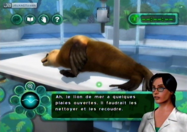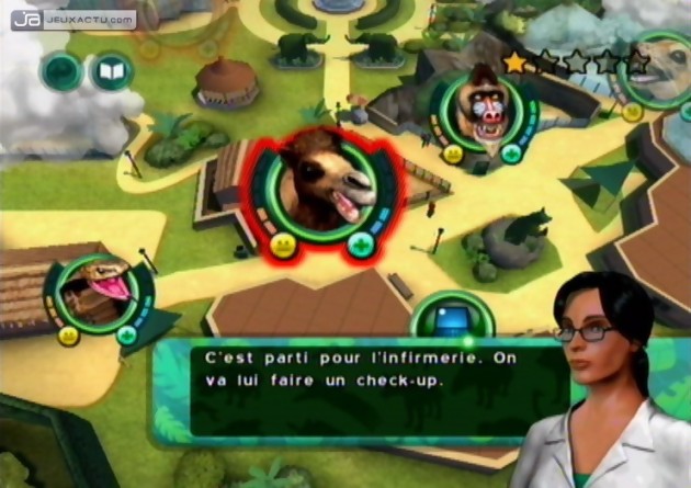 Est-ce notre visite à l’Ecole Vétérinaire de Maisons-Alfort lors de l’émission 118 de JeuxActu TV qui nous a poussée à vouloir tester en profondeur ce Zoo Hospital ? Toujours est-il que le titre de Majesco Entertainment arrive à point nommé, au moment où l’actualité est au plus calme pour passer au crible. Qui n’a en effet jamais rêvé de jouer les vétérinaires dans sa jeunesse ? Soigner de pauvres animaux blessés ou en détresse, les nourrir et les voir ensuite gambader en bonne santé dans leur enclos, voilà une belle démonstration d’amour envers ces mammifères. Jeune diplômé de l’école vétérinaire, le héros du jeu est envoyé par sa Tante Lucy à la clinique du zoo qu’elle dirige d’une main de fer. Malheureusement, depuis quelques temps, un magnat de l’immobilier, Gordon Grimm, a très envie de racheter le site pour y construire un mini-golf. Etant donné que le zoo de Tante Lucy est un peu en perte de vitesse, un peu comme notre Zoo de Vincennes d’ailleurs, Gordon a toutes les chances de son côté pour faire valoir son projet. Notre jeune véto a donc la lourde tâche d’aider sa tante à relancer la gloire passée en soignant ses habitants pour faire du zoo un lieu incontournable. Quel suspense !