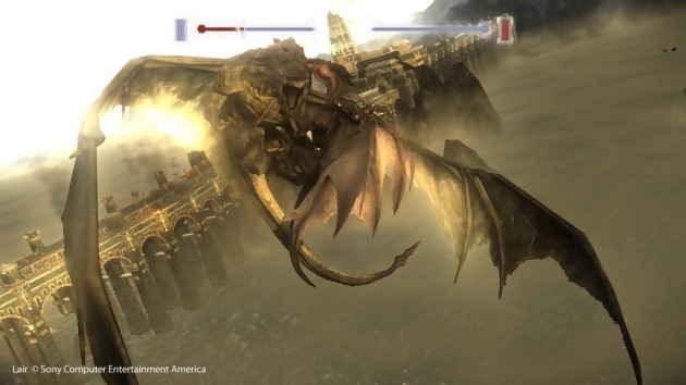 Difficile de ne pas penser à l’ancien hit de Sega lorsqu’on voit tourner pour la premier fois ce Lair. Annoncé par le biais d’un trailer assez mémorable, Lair n’est autre que le dernier projet en date de Factor 5, un studio japonais renommé pour sa série des Rogue Squadron. Après avoir travaillé pour le compte de Nintendo, le studio change de camp et se ligue avec Sony Computer Entertainment pour mettre sur pied un nouveau jeu de shoot mais cette fois-ci à dos de dragons. Pas le temps de connaître un tantinet l’histoire du jeu et nous voilà la manette PS3 en mains, prêt à enfourcher sa grosse bête bipède.